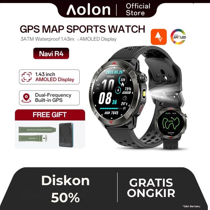 Smartwatch Aolon Navi R4 New Dual GPS 6-satellite Positioning IP68 Wateproof Xiaomi Samsung Huawei Jam tangan Pria