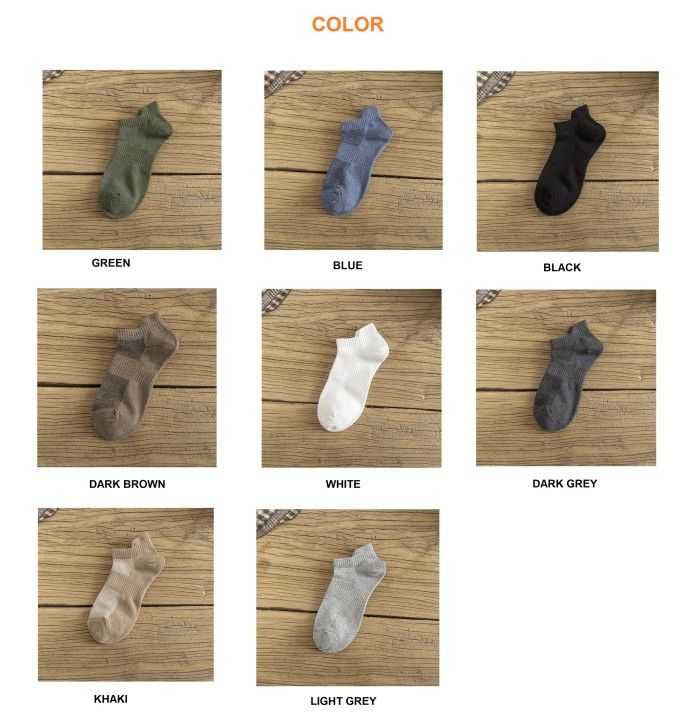 green, blue, black, khaki, dark brown, white, light grey, dark grey, dark blue, ginger, Cream