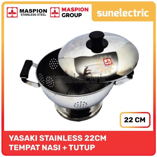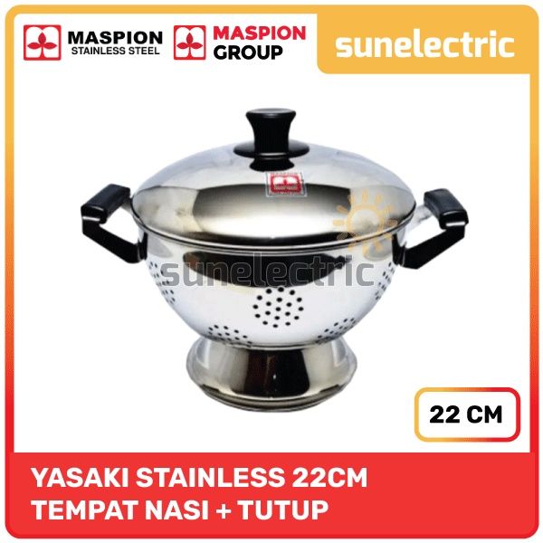 Maspion SS Tempat Nasi Stainless Anti Maspion SS Tempat Karat / Wakul / Bakul / Wadah Nasi + Tutup Yasaki 22 cm - Silver