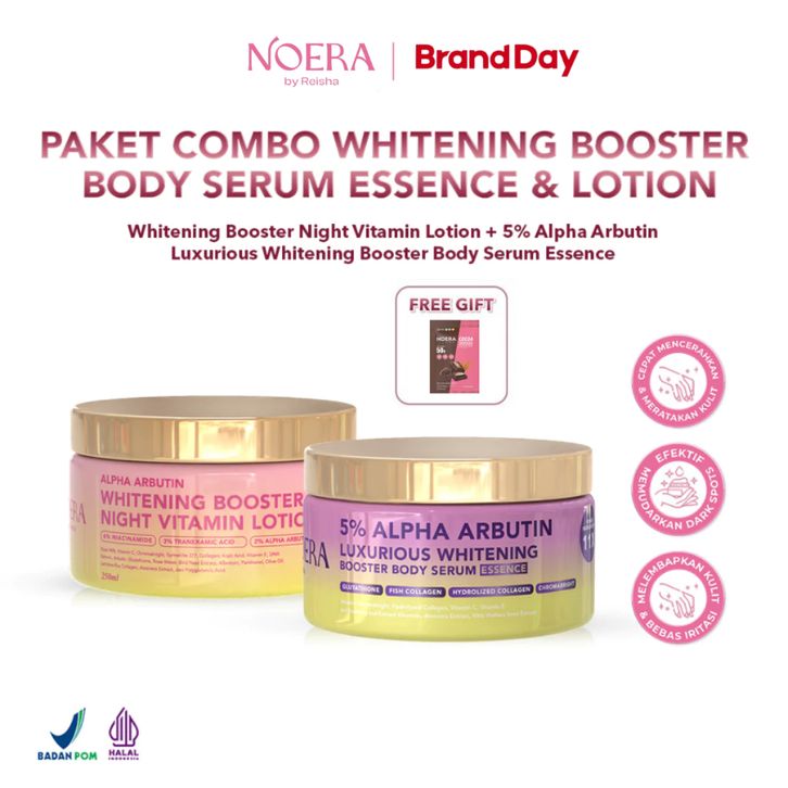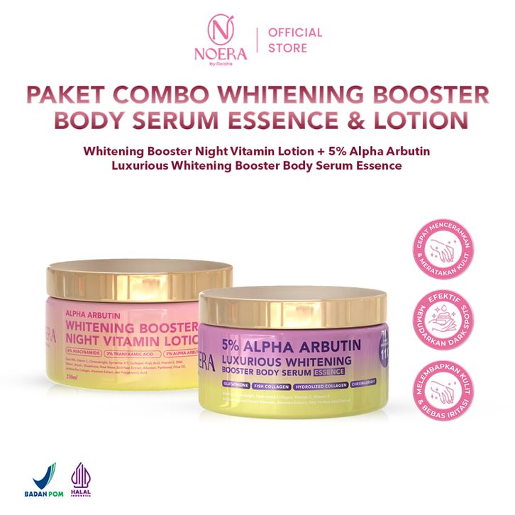 Paket Combo Whitening Booster Body Serum Essence & Whitening Booster Night Vitamin Lotion & 5% Alpha Arbutin