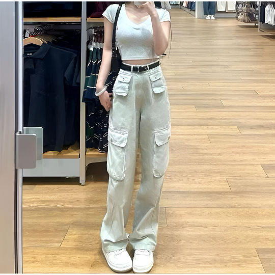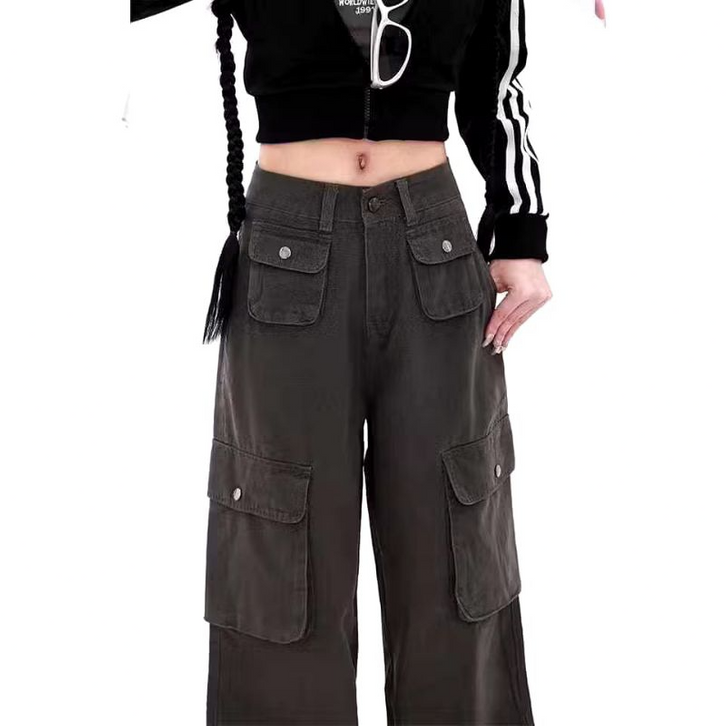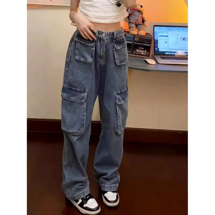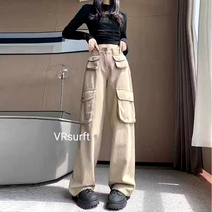 Celana Cargo Wanita Highwaist Premium Jumbo Cargo Loose Jeans Korean Style