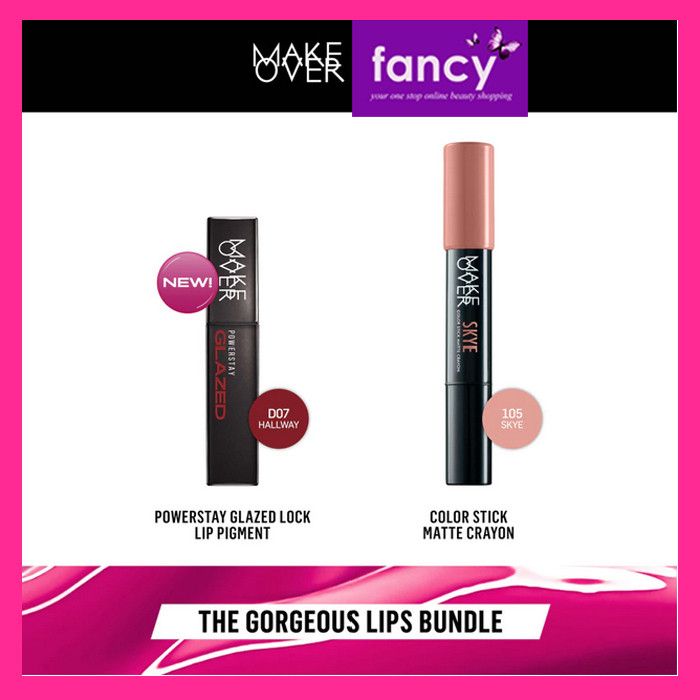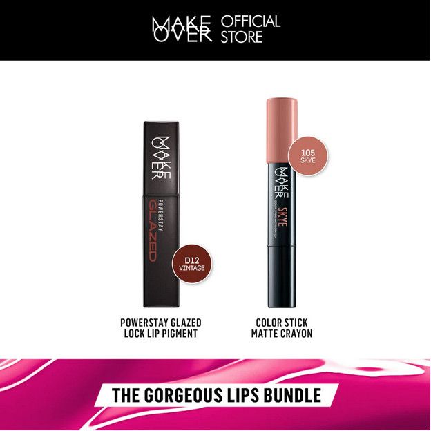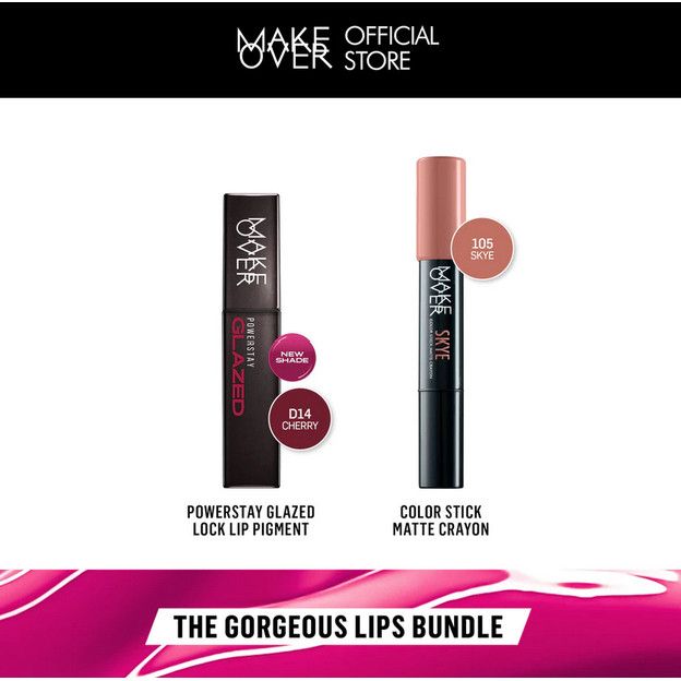 Paket Ombre Lips MAKE OVER GORGEOUS LIPS BUNDLE : Glazed Lock Lip Pigment + Color Stick Matte Crayon 105 Skye