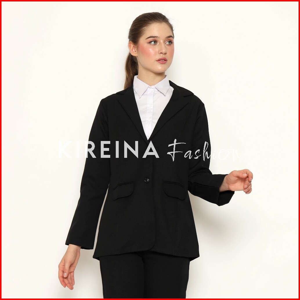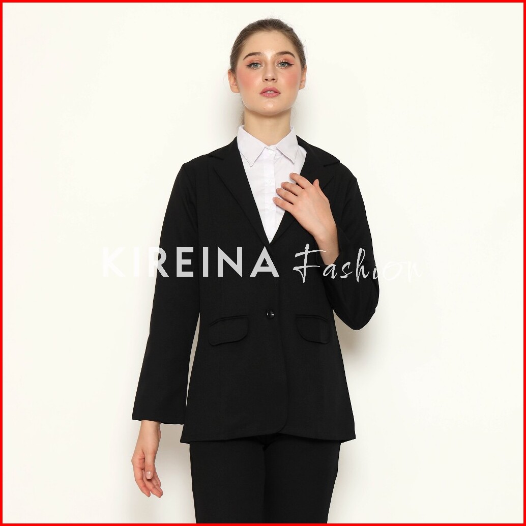 Kireina Jas Hitam Wanita Blezer Kerja Body Panjang