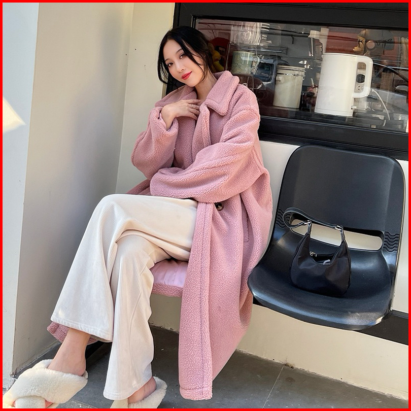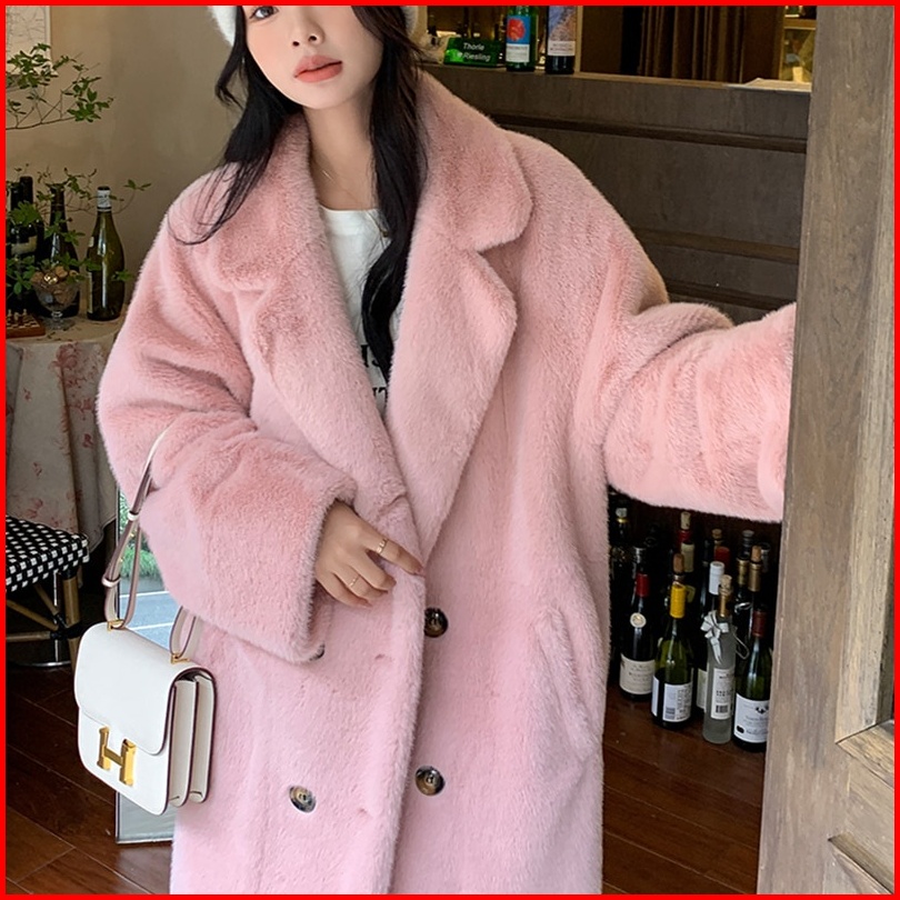 Blazer Wanita Mantel Bulu Pink Korean Style