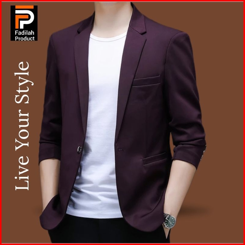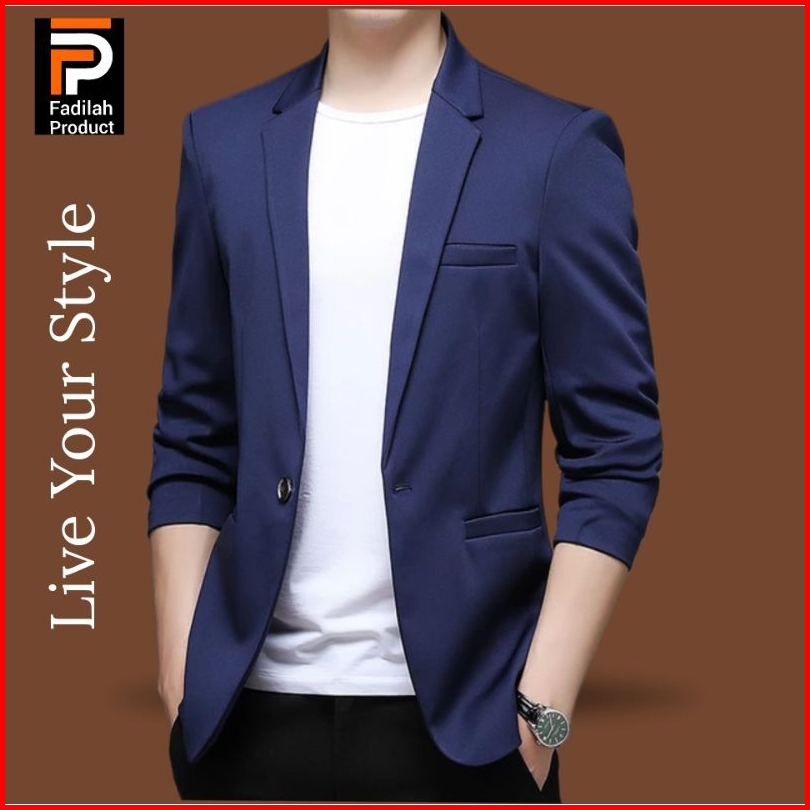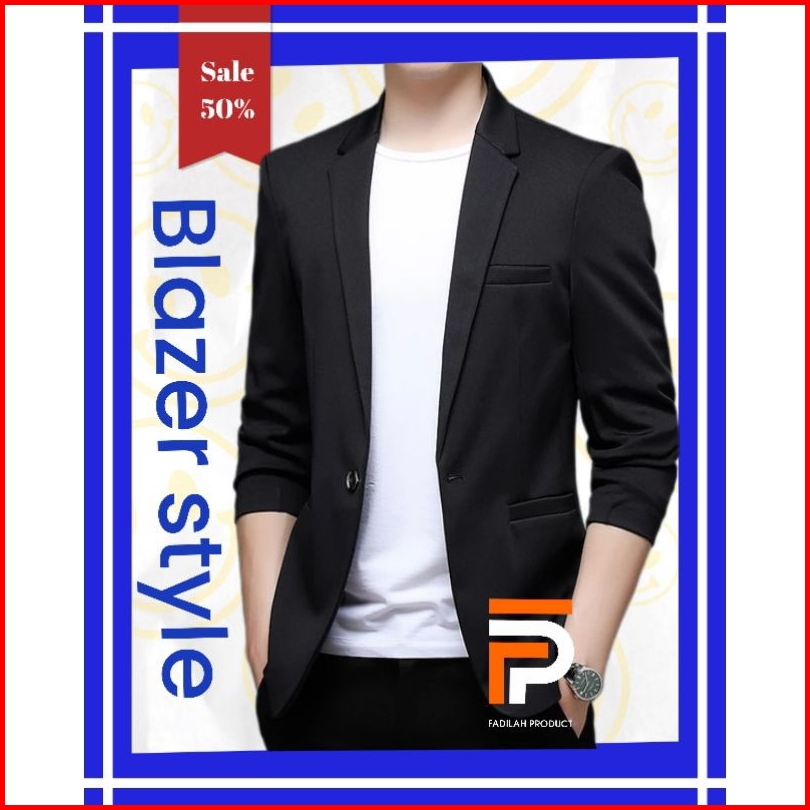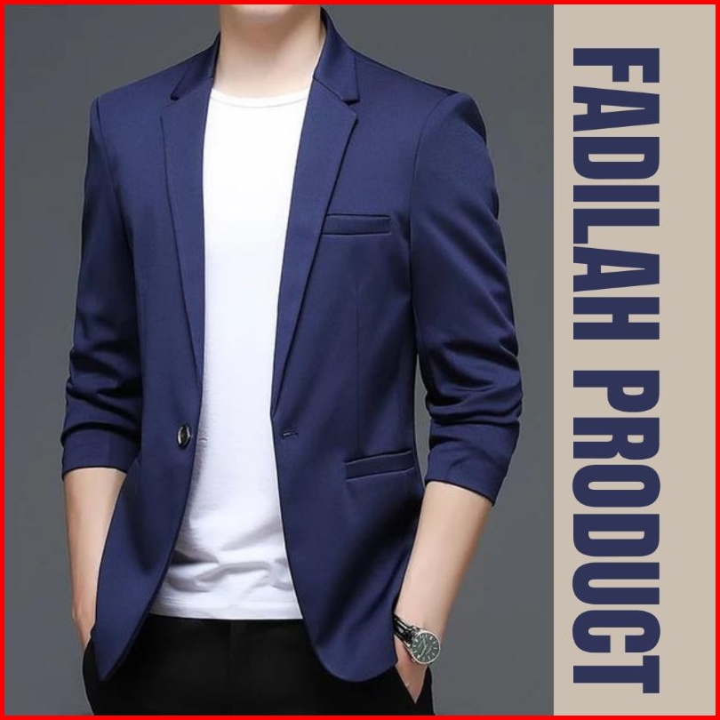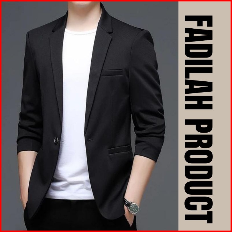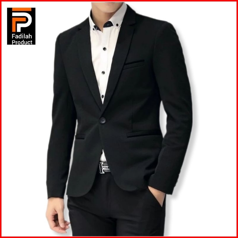 Jas Blazer Pria Hitam Semi Formal Slimfit Model Saku Tanpa Tutup Lengan Panjang