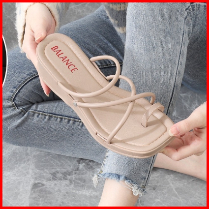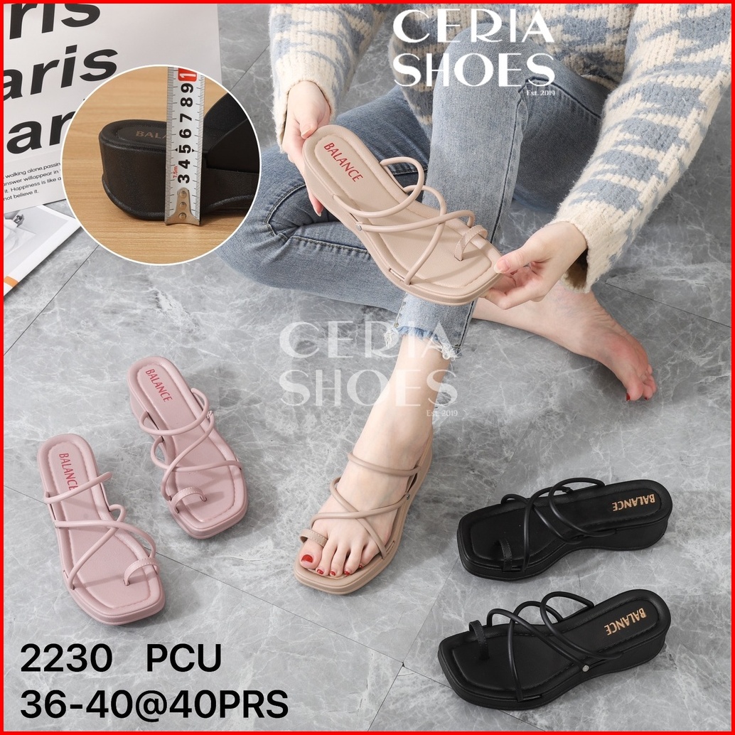 Sandal Jepit Wanita Karet Jelly Model Slop Tali Wedges Import Hak Tinggi 5 Cm Balance 2230