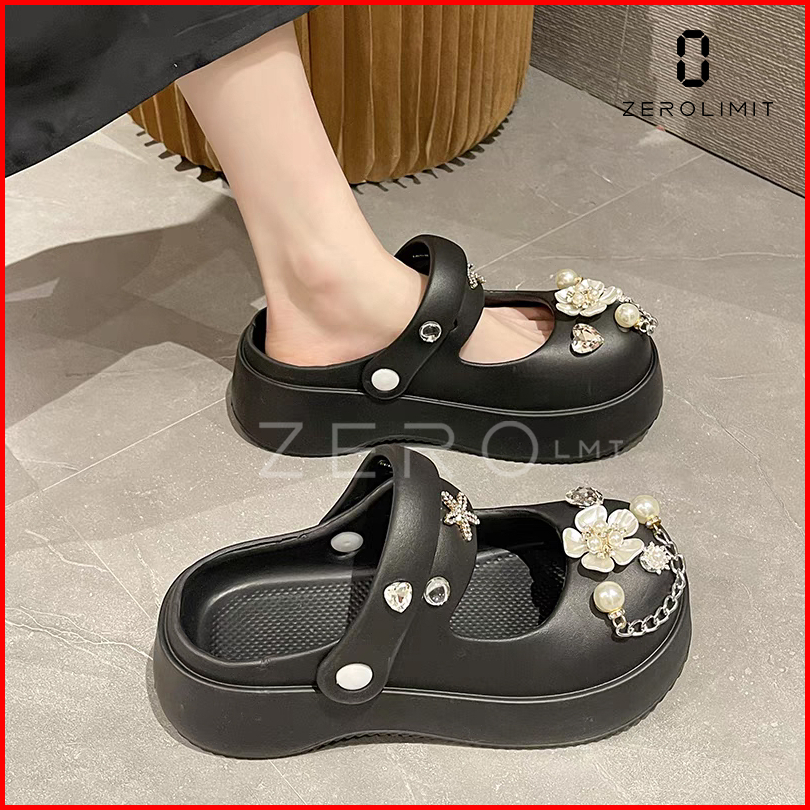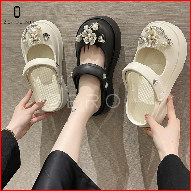 Zerolimit - Sandal Sepatu Wanita Inara Permata Sendal Slip On Korean Style Terbaru 2025 Size 31-40