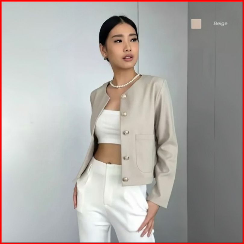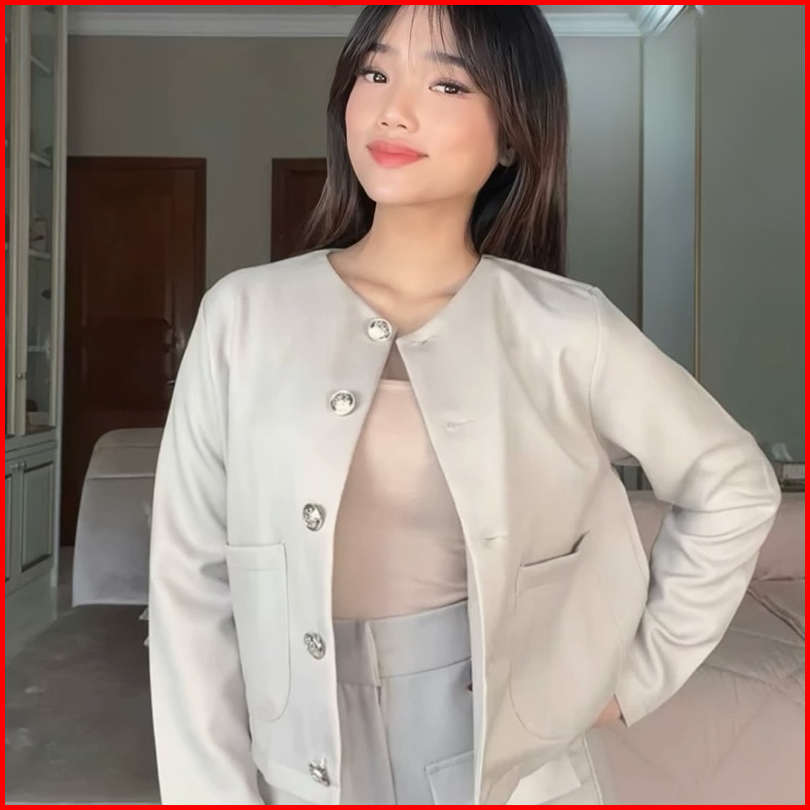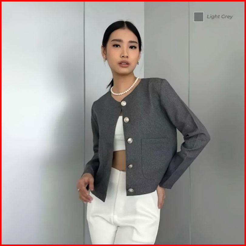 Luxoyez Bisa Emma Blazer - Blazer Kantor Wanita Formal Outer Crop Blazer Semi Wool Anti Kusut I150