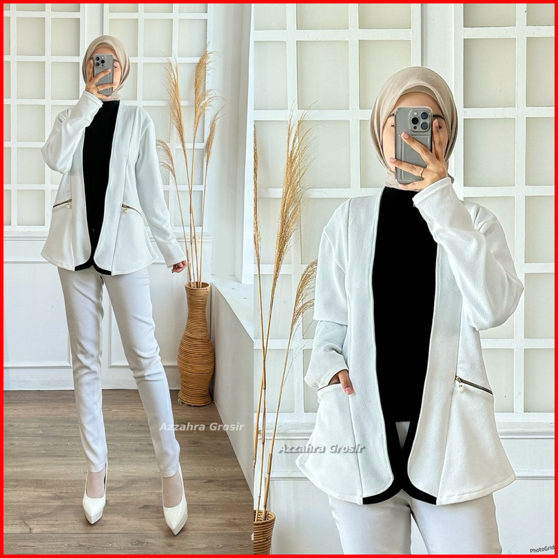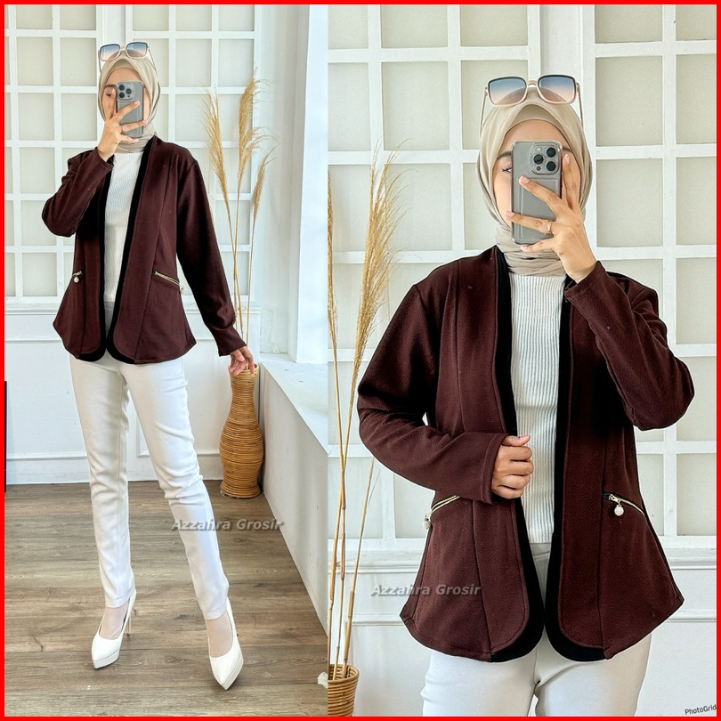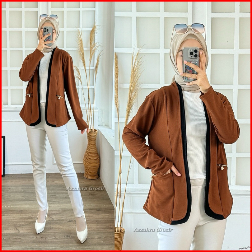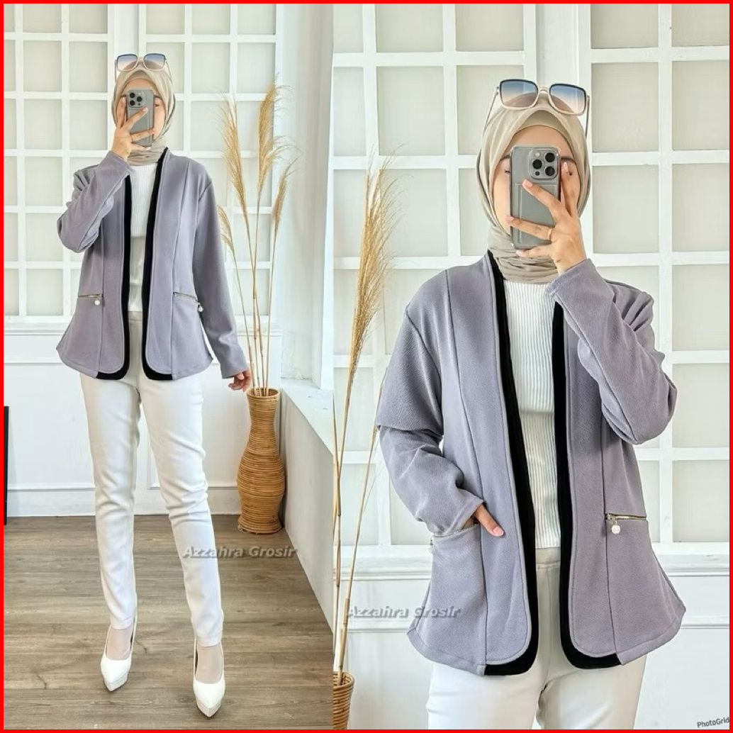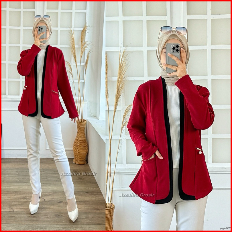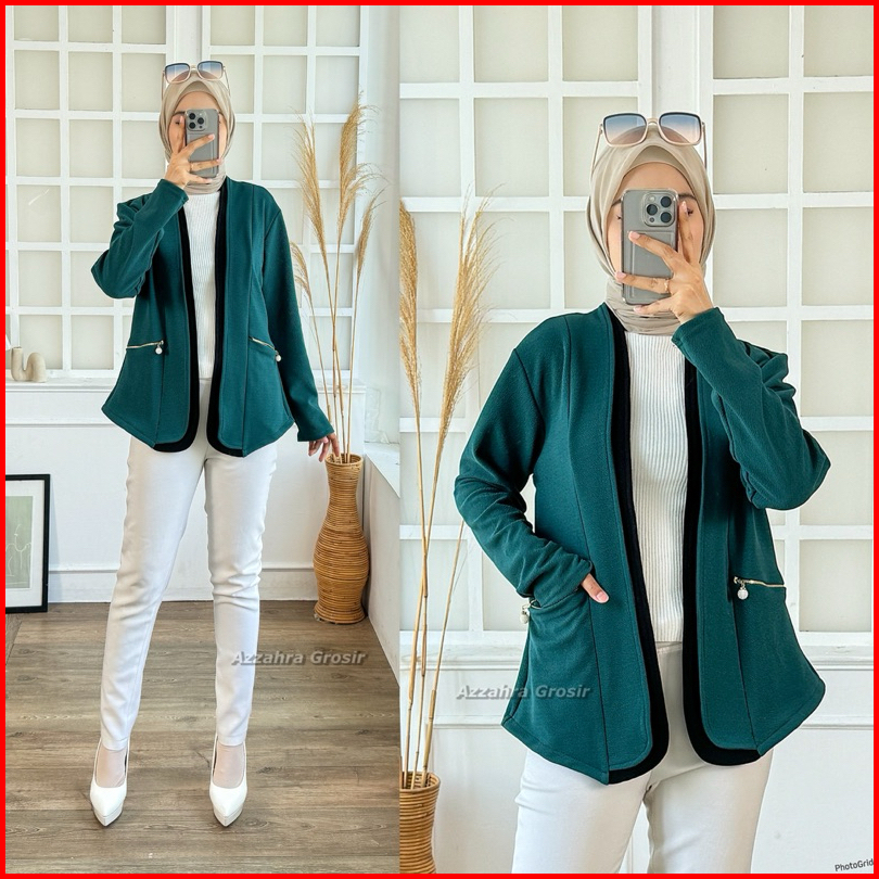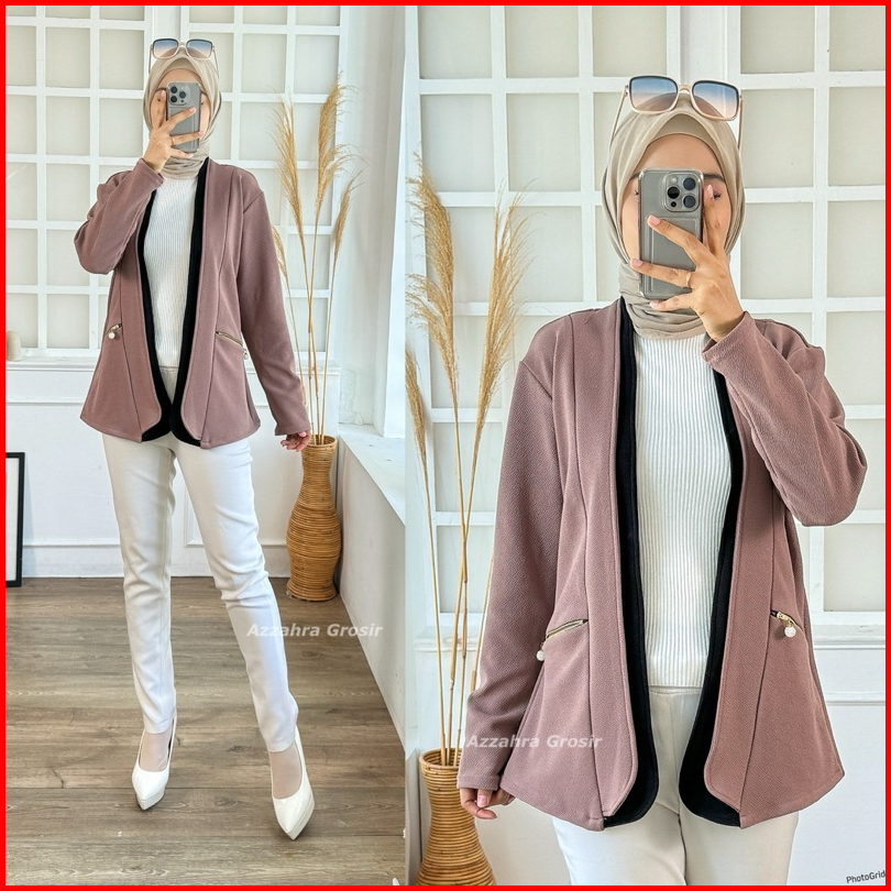 Am - Tiffanie Cardigan Wanita Outer Korean Style Double Pocket Formal Informal