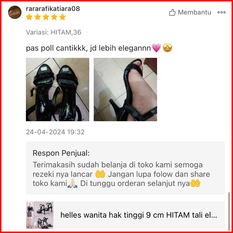 Helles Wanita Hak Tinggi 9 Cm Hitam Tali Ell Helles Kekinian