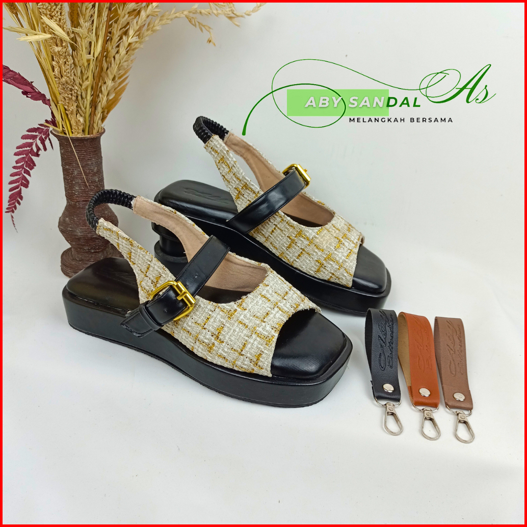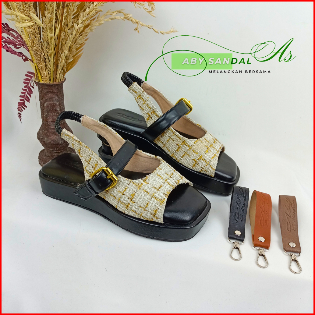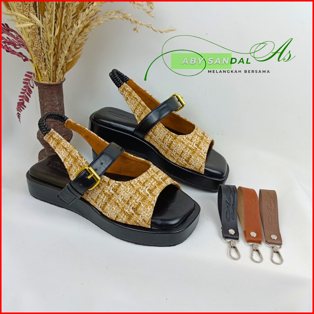 Aby Sandal Platform Wanita Kekinian Rajut Gesper Model 2024