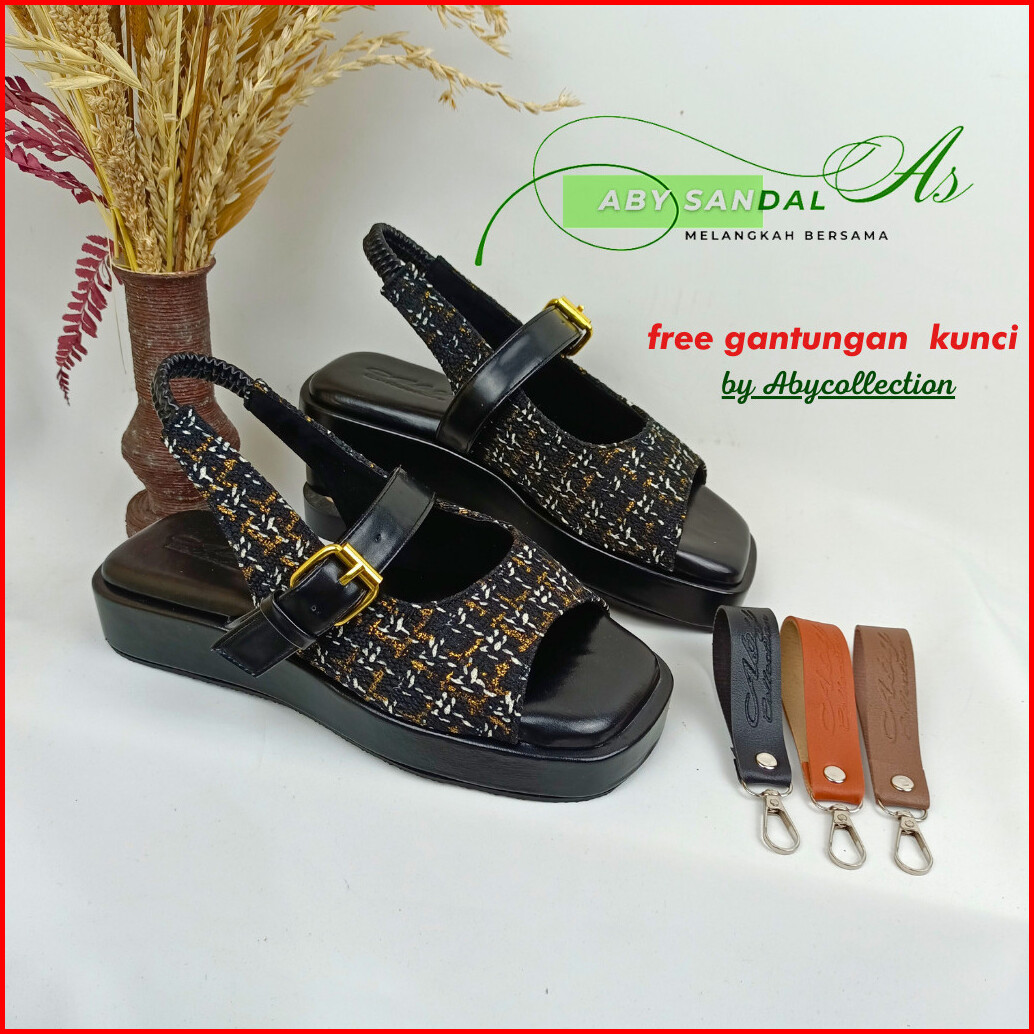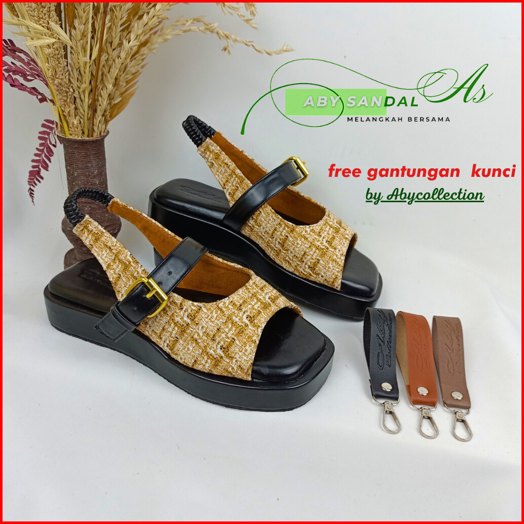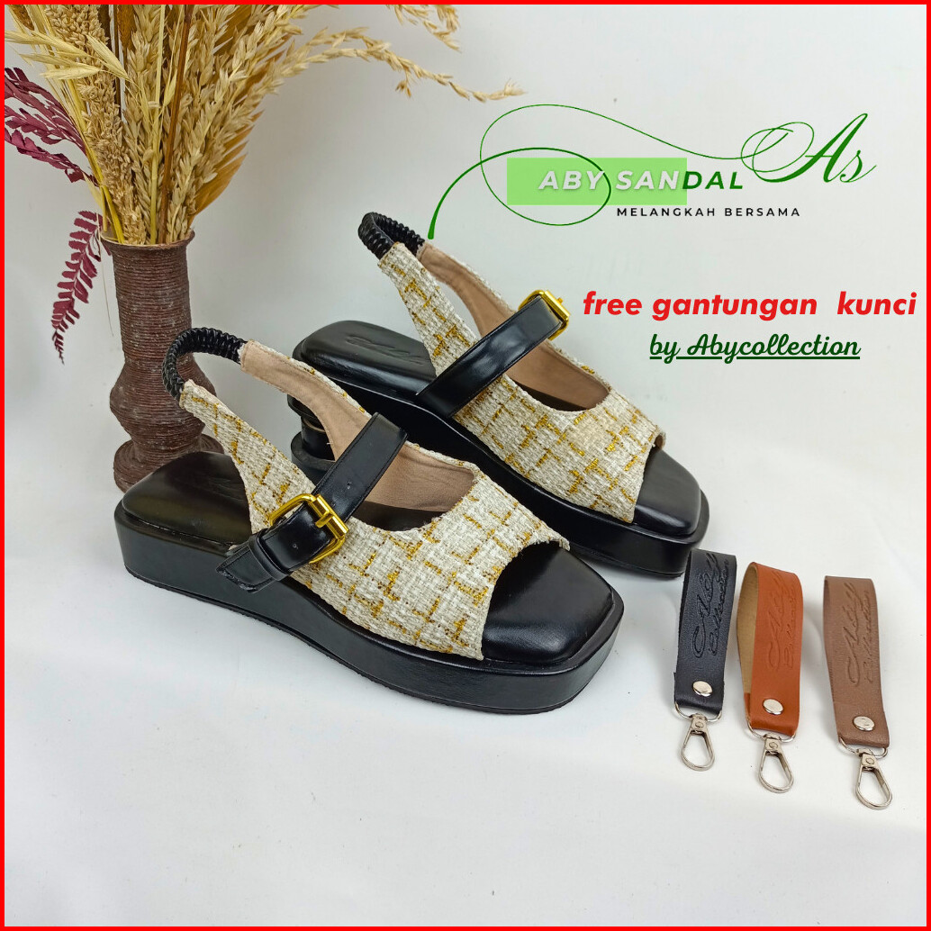 Aby Sandal Platform Wanita Kekinian Rajut Gesper Model 2024