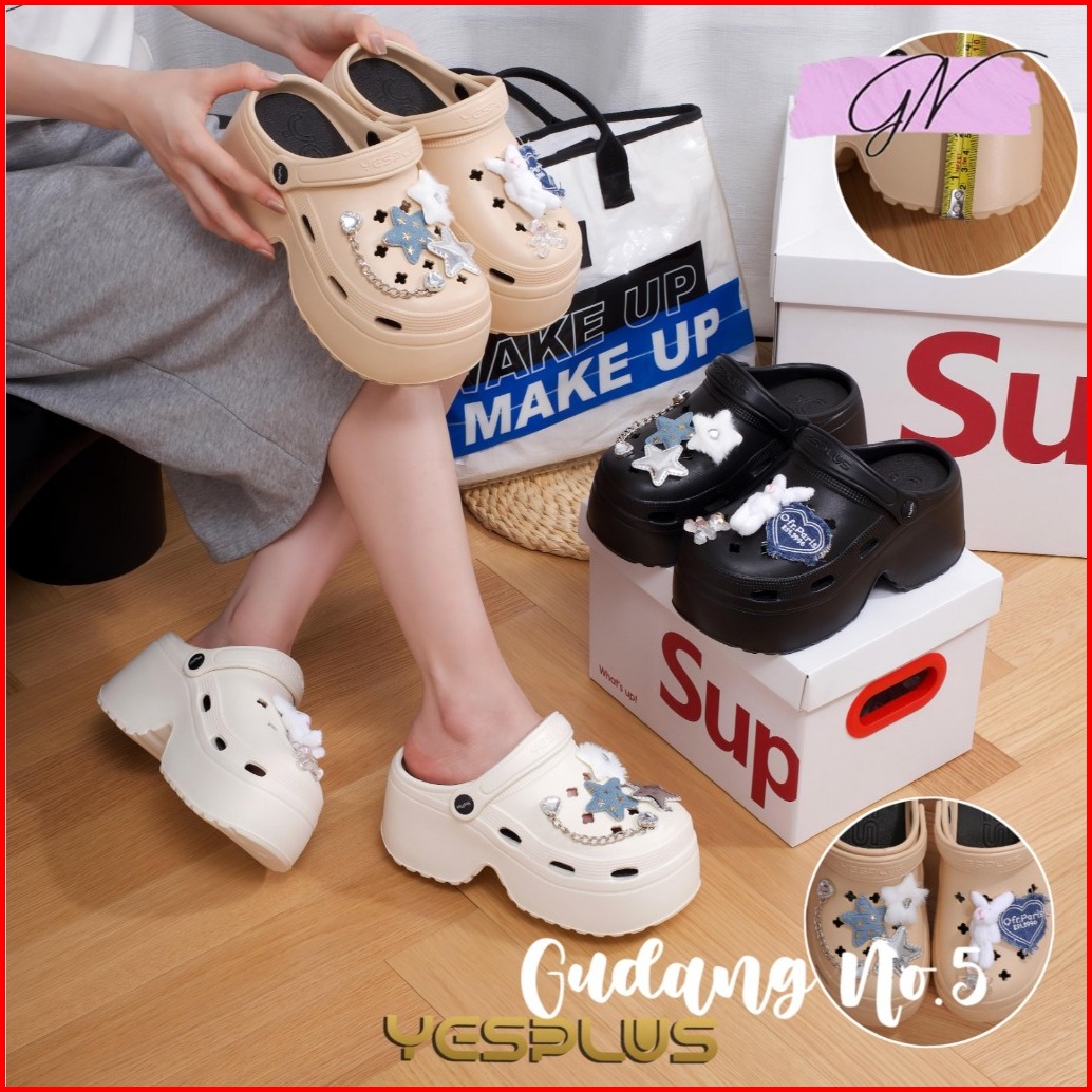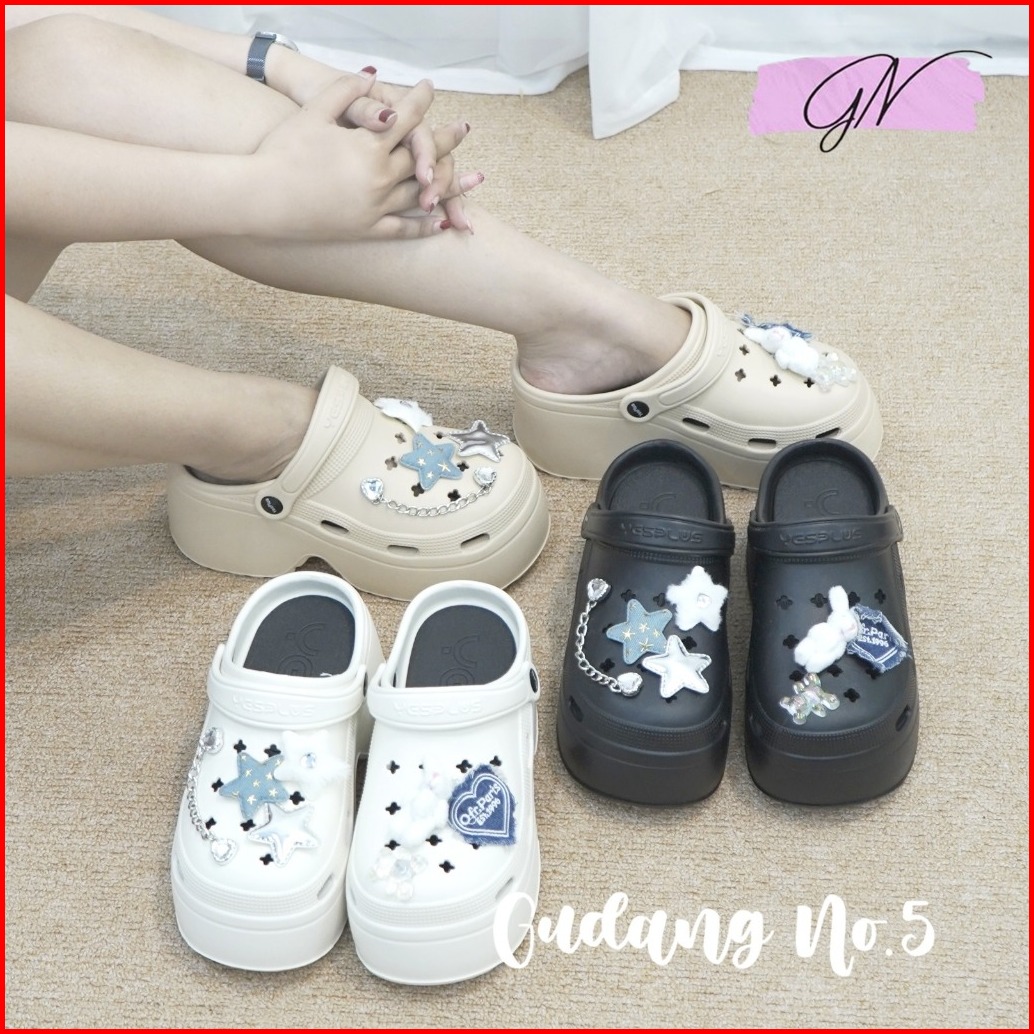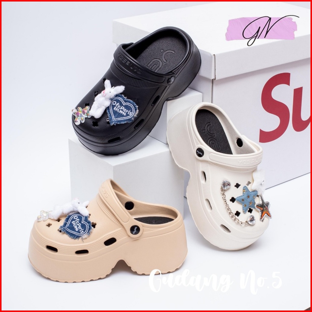 Gn-8899-9 Sandal Baim Eva Rubber Import Sandal Fuji Tinggi 9cm Jibbitz Rabbit Fashion Wanita Terbaru