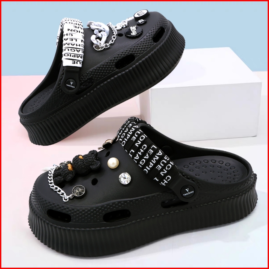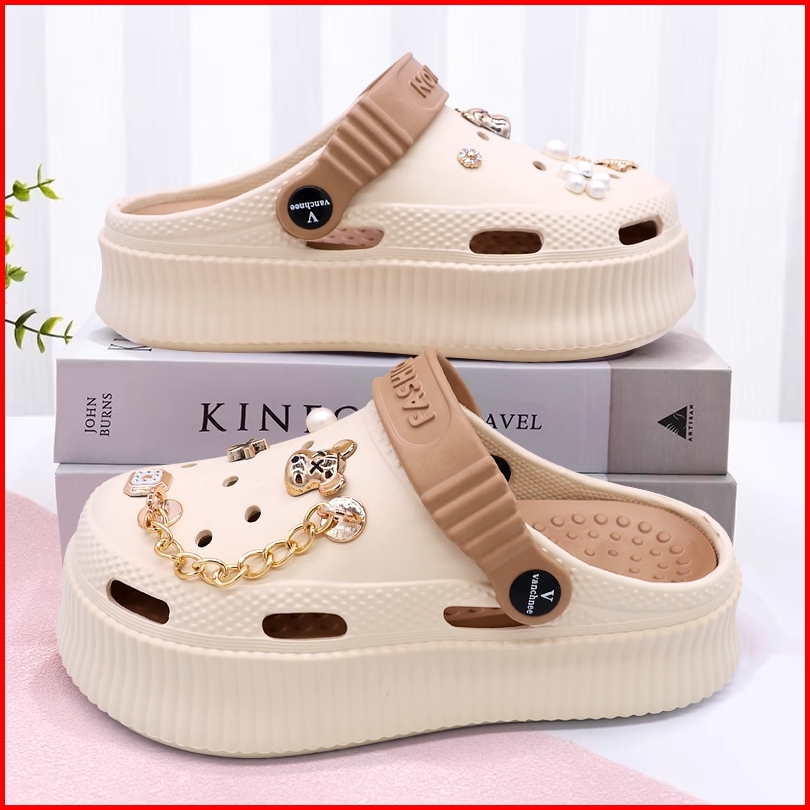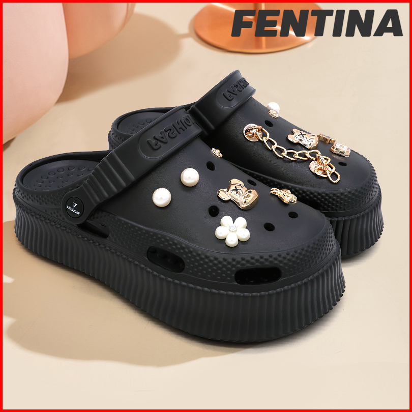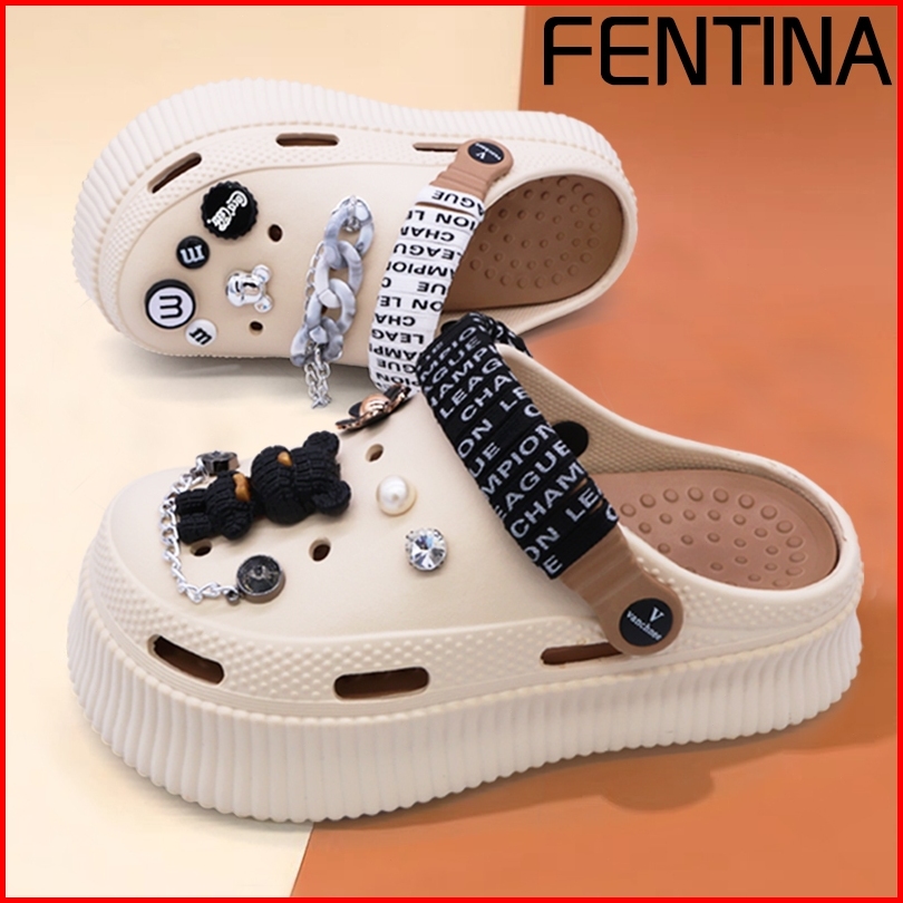 Fentina Sandal Wanita Kekinian Sandal Kodok Wanita Sandal Slop Wanita Sandal Baim Wedges Anti-selip