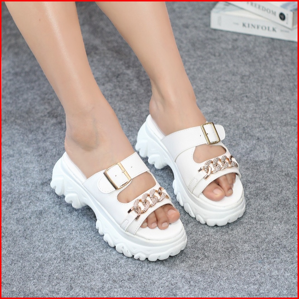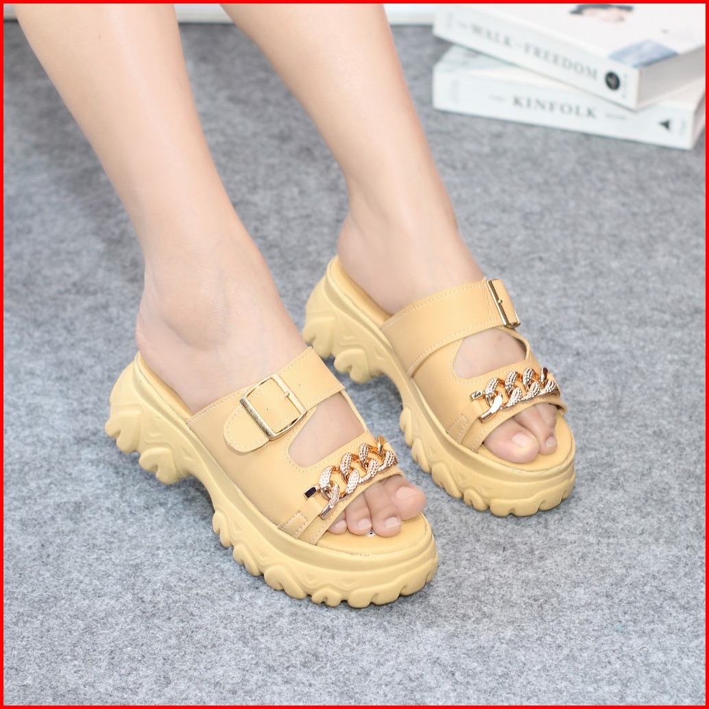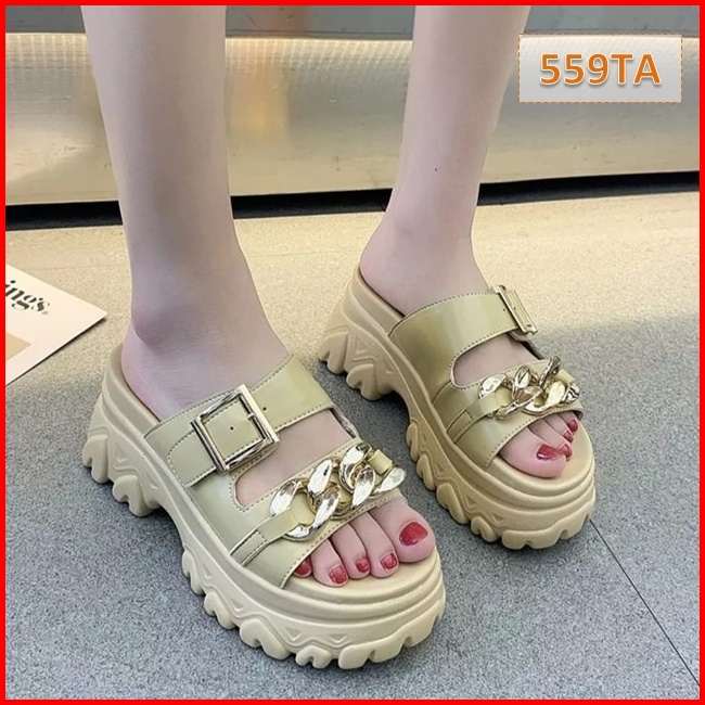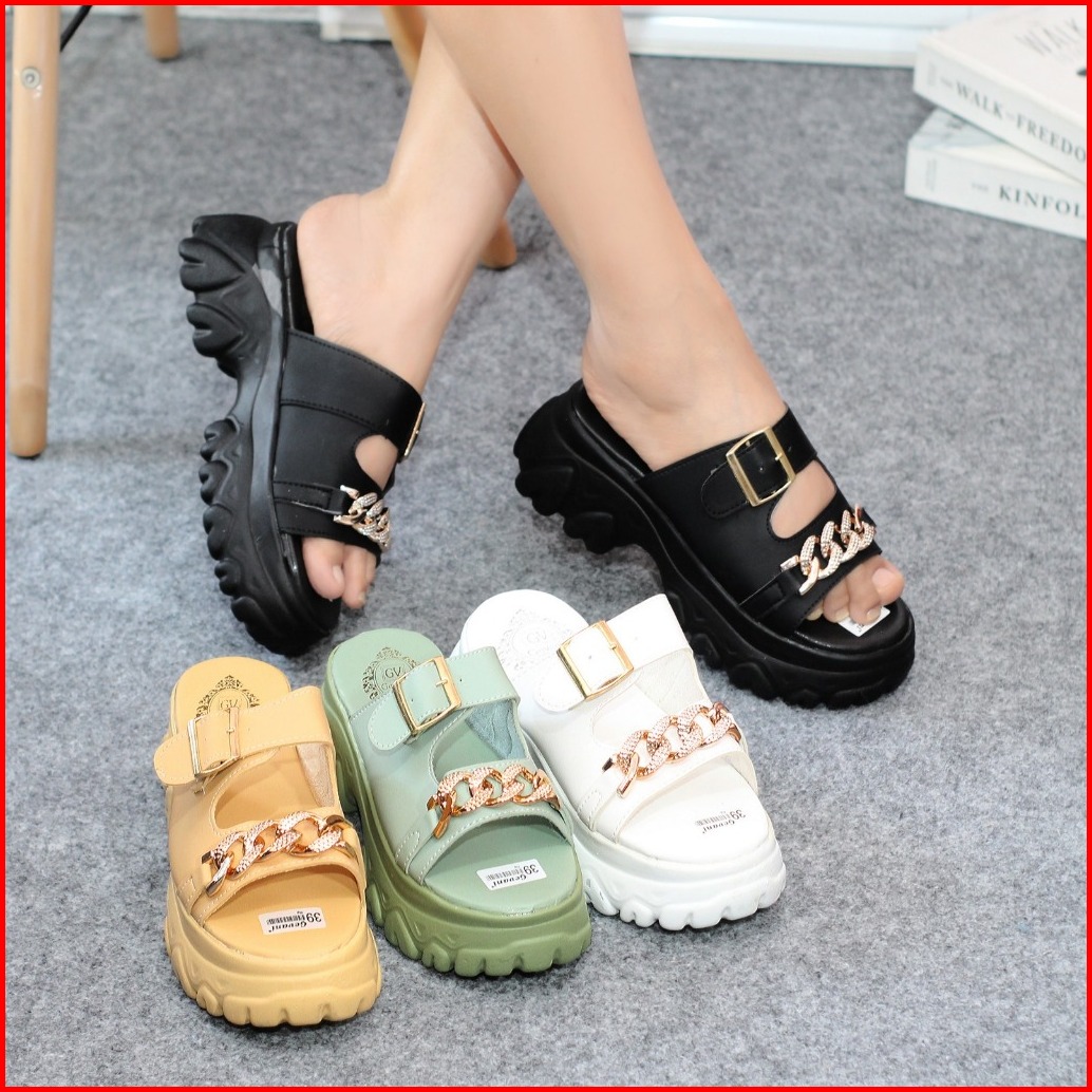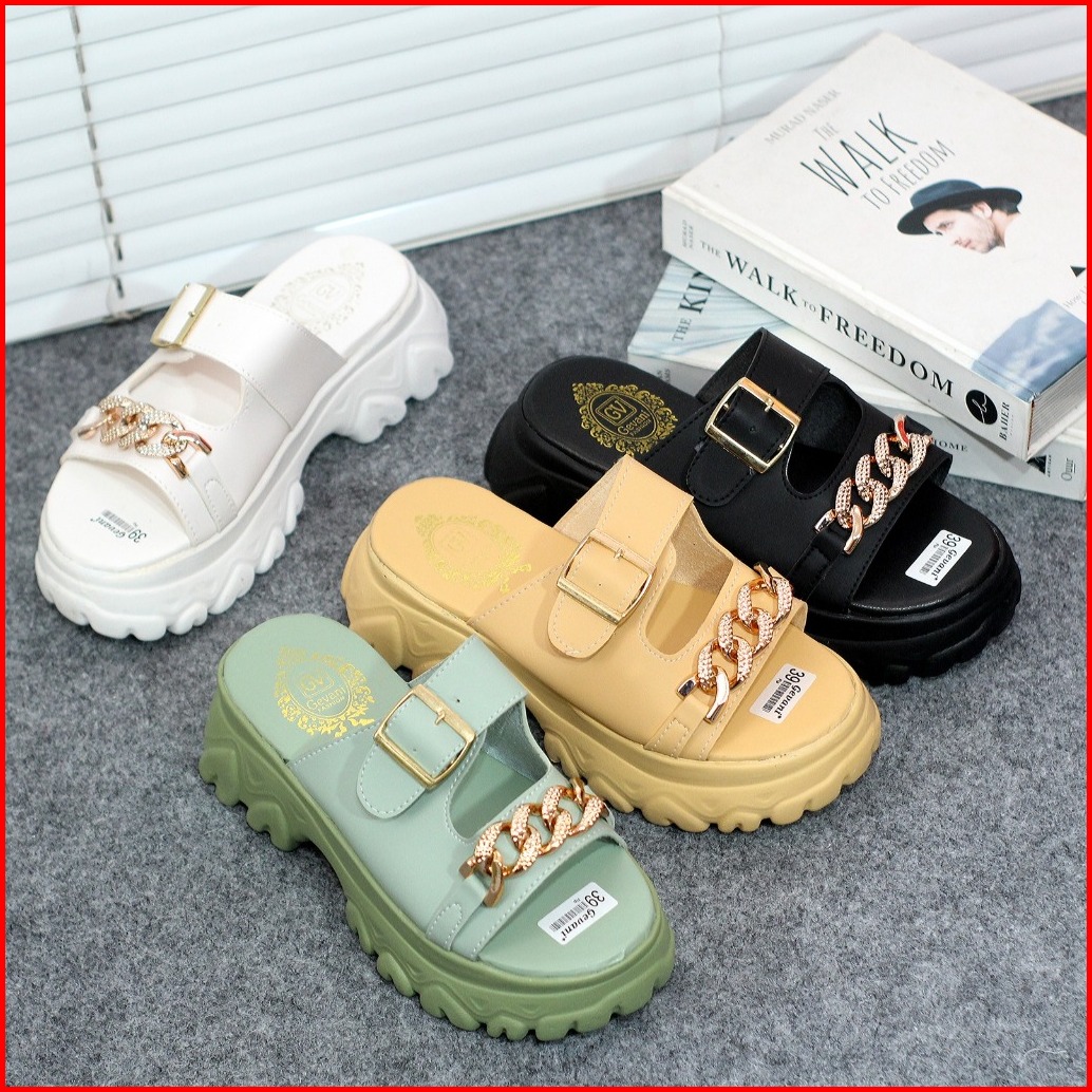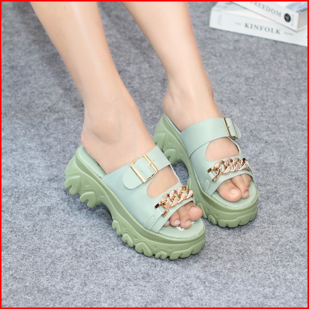 Jejak Sandal Wanita Wedges Selop Kokop Rantai Gesper Hitam Hijau Putih Tan Sp194