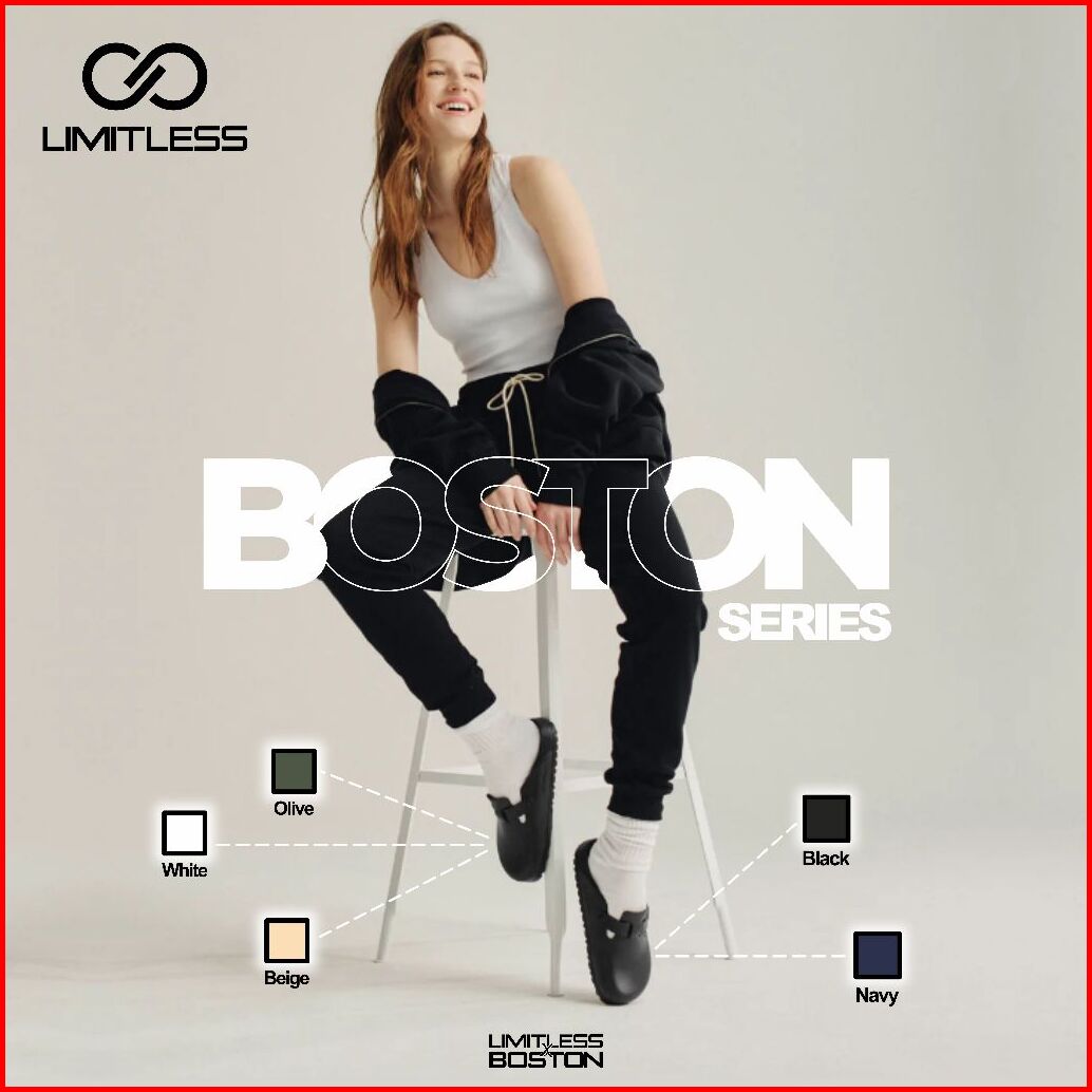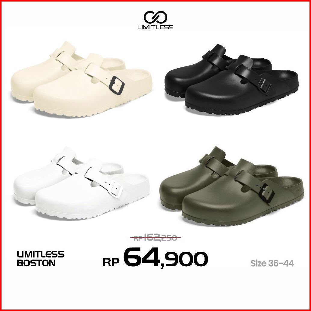 Limitless Sandal Slop Wanita Boston Terbaru Sendal Slip On Cewek Kekinian Fashion Korea Size 36 - 44