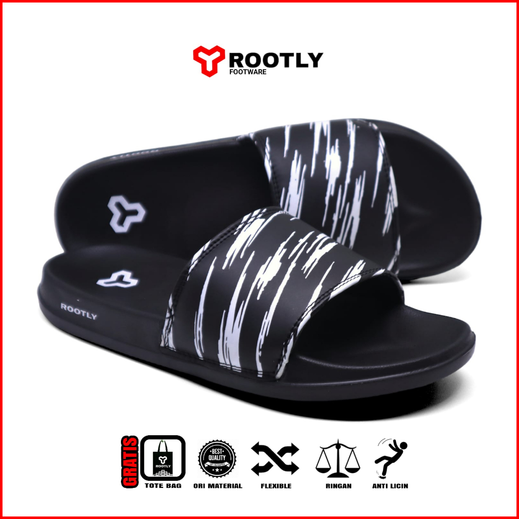 Rootly - Sandal Pria Street Selop Slid-on Sliper Corak Black