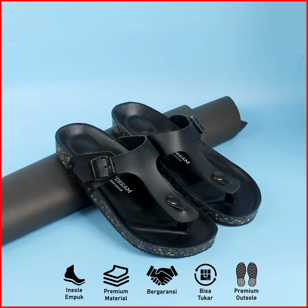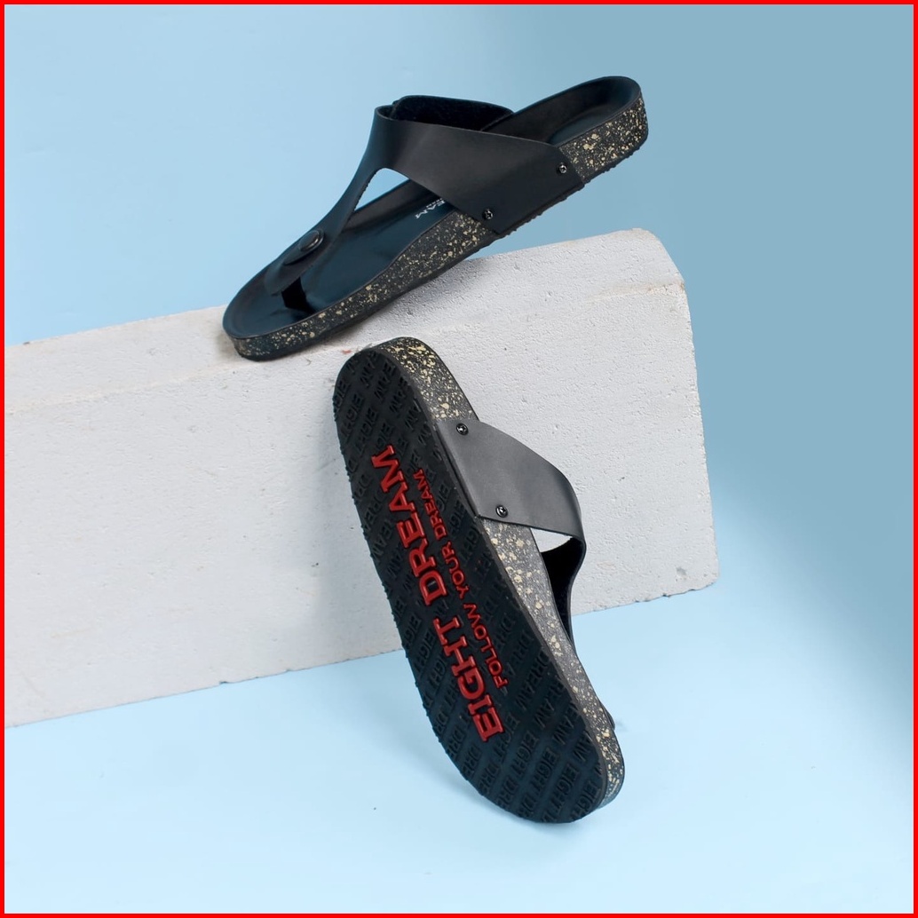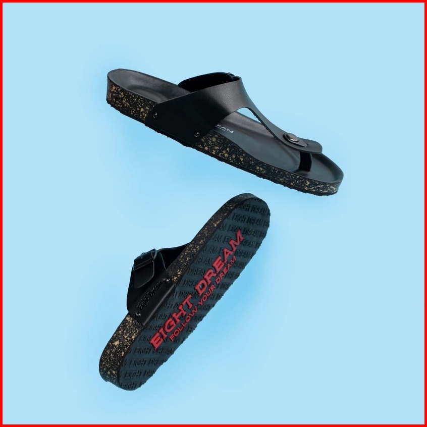 Ed Eight Dream - Aka Full Black Sandal Jepit Kulit Pria Distro Original Jepit Kekinian