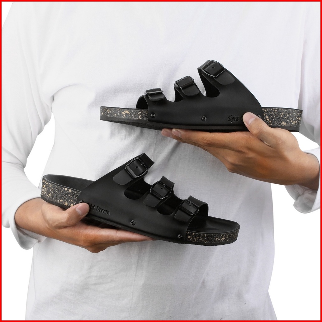 Footsky X Eight Dream - Kama Full Black Sandal Pria Wanita Sendal Main