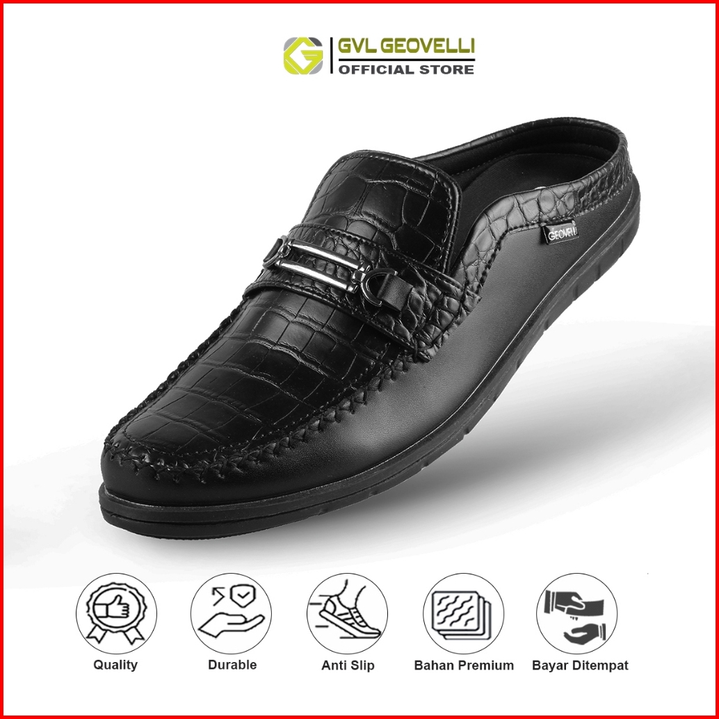 Gvl Geovelli 1957 Moscow Black Sandal Butong Hitam Sendal Pria Kasual