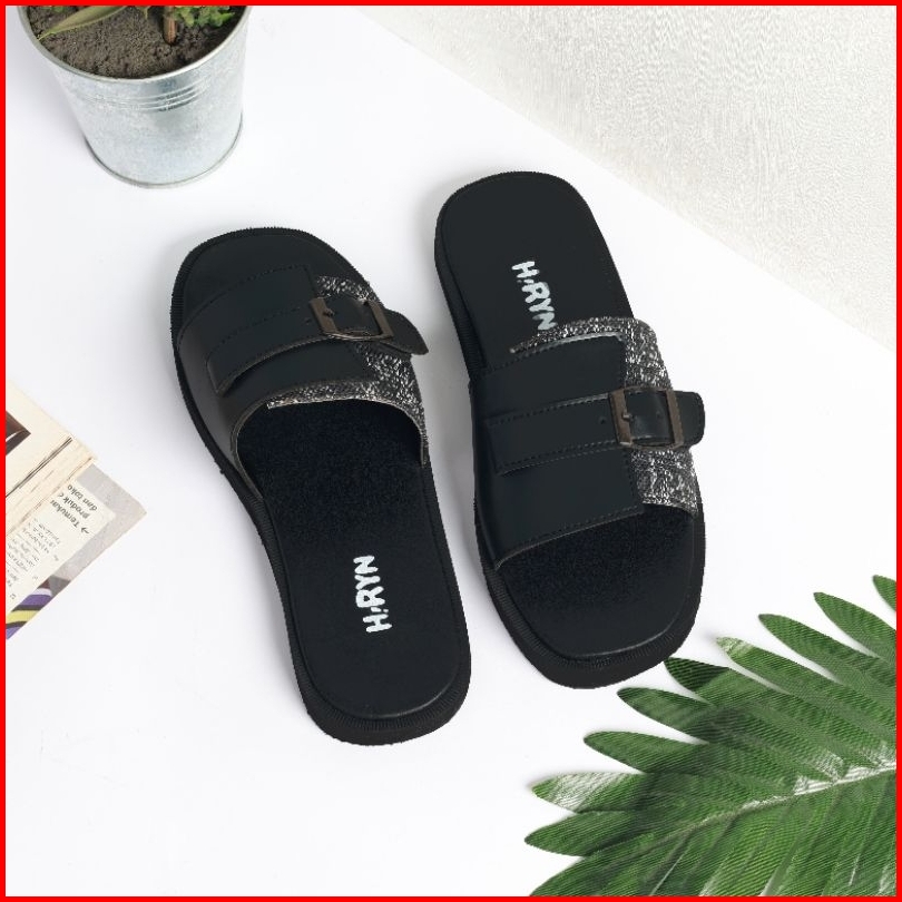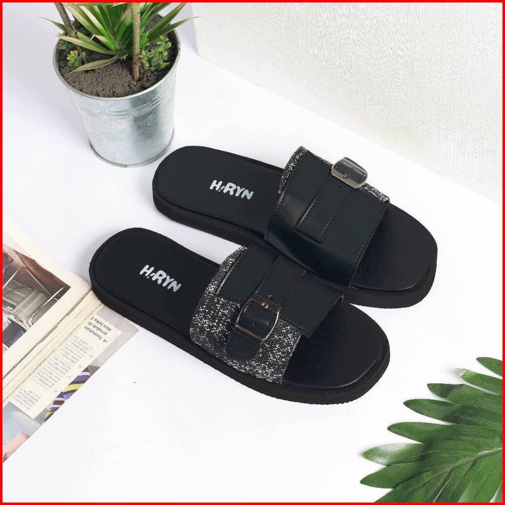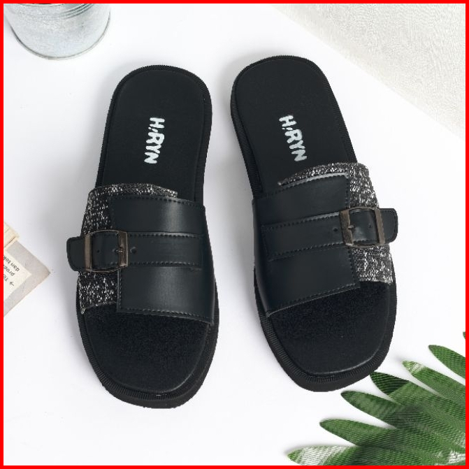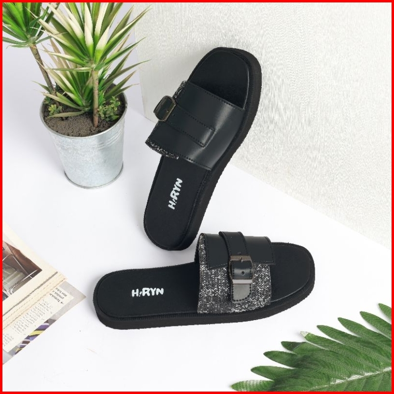 Free Bubblewrap Box Sandal Wanita Flat 2cm Kanvas Juny Black