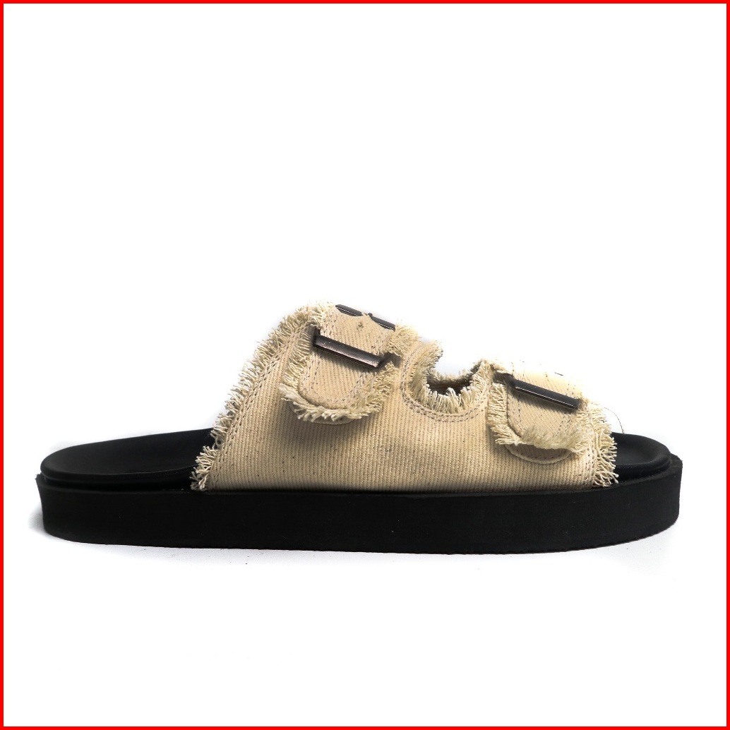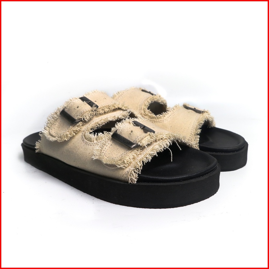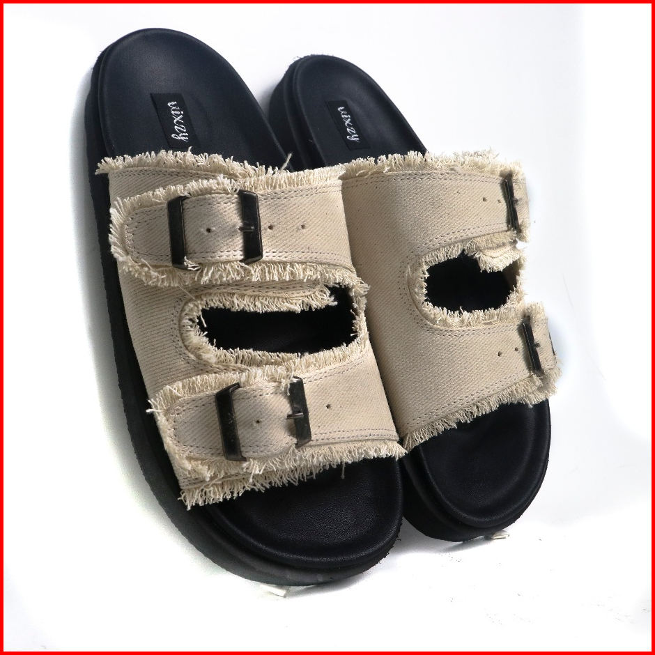 Vixzy Sandal Platform Wanita Terbaru Tinggi 3cm Bahan Kanvas Warna Kekinian Cream Empuk Dan Ringan Size 36-41