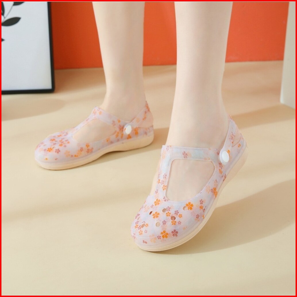Okaido Sandal Wanita Clog Sepatu Wanita Model Bintang Dan Bunga Floral Bahan Karet Jelly Produk Terbaru