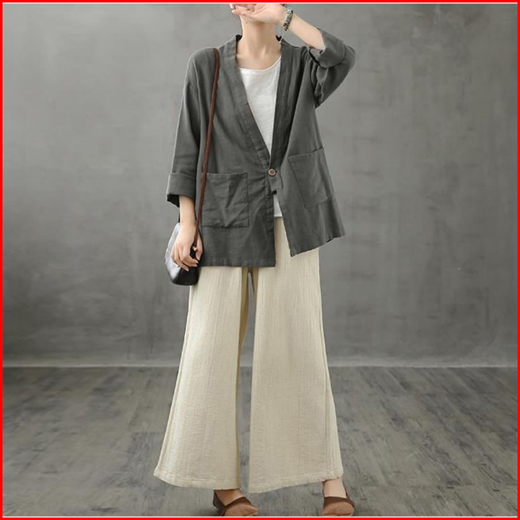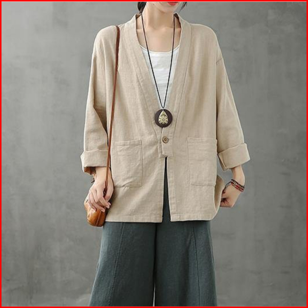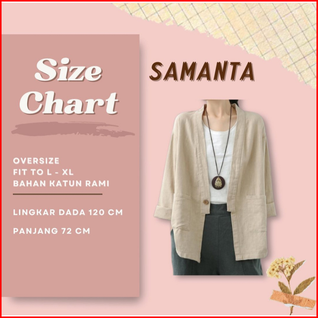 Samanta Blazer Wanita Korea Lengan Panjang Jumbo Bahan Linen