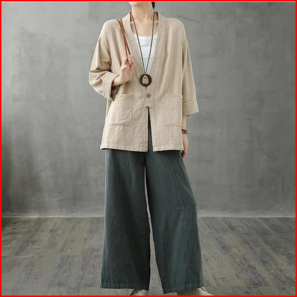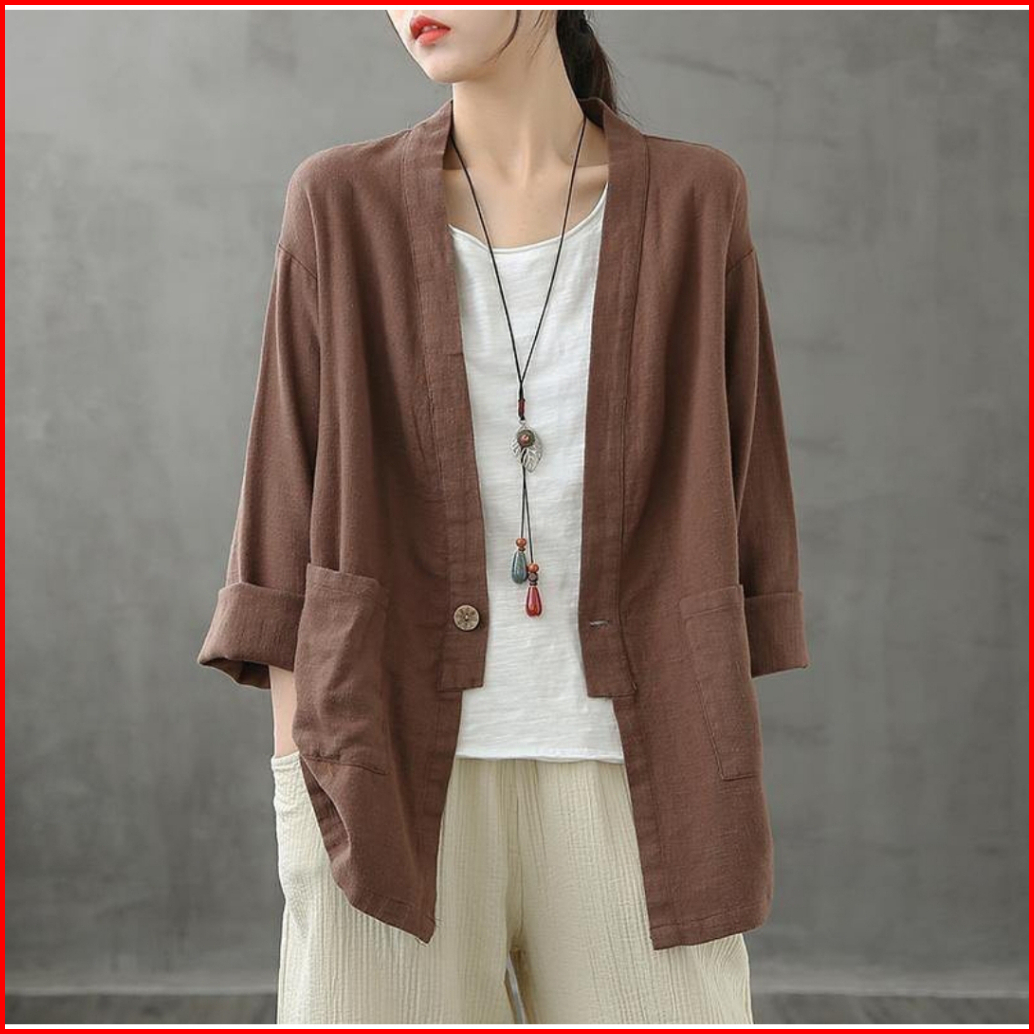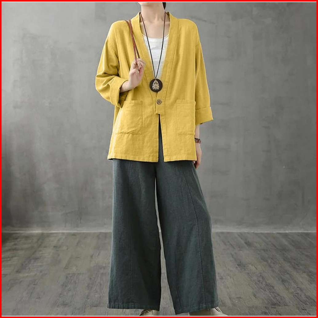 Samanta Blazer Wanita Korea Lengan Panjang Jumbo Bahan Linen