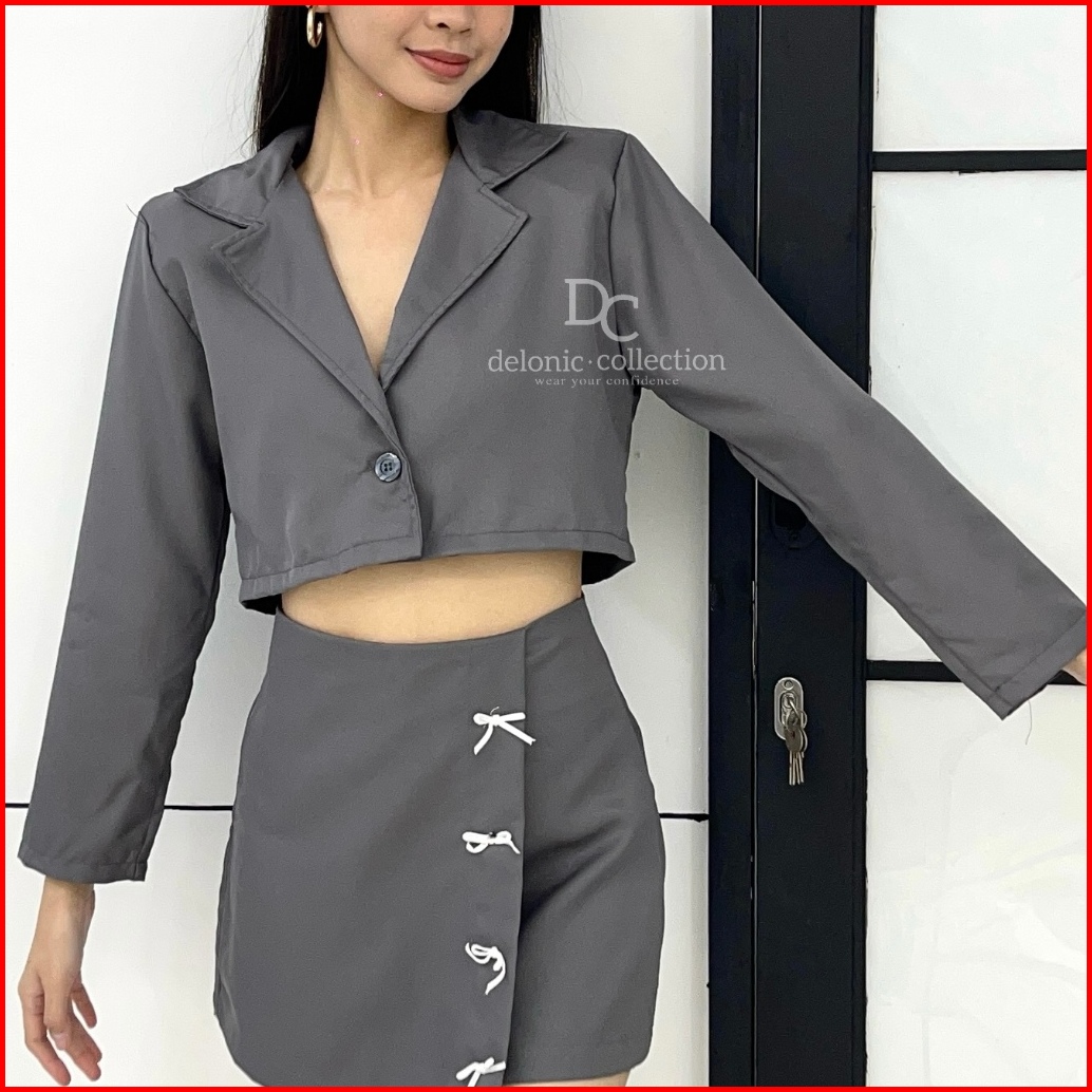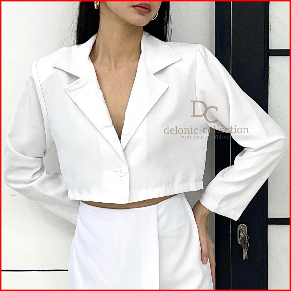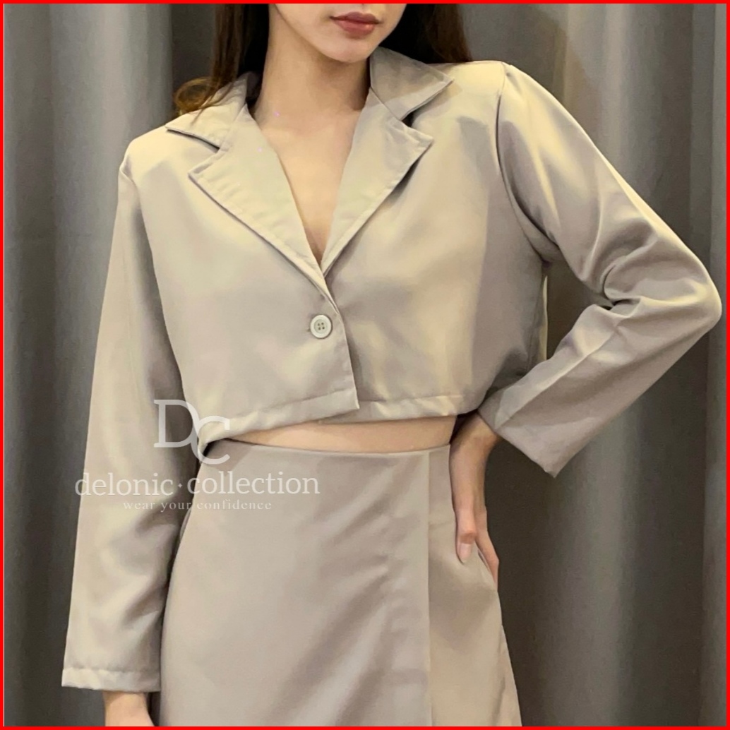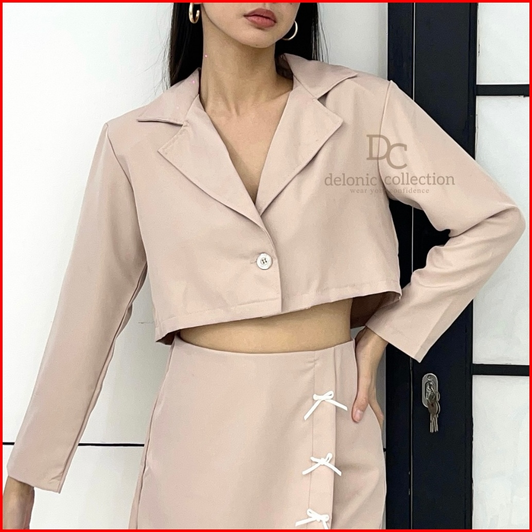 Eyli Blazer Outter Crop Top Twill Baleno - Atasan Baju Wanita Croptop Vneck Fashion Wanita Outfit Korea Hangout Kekinian