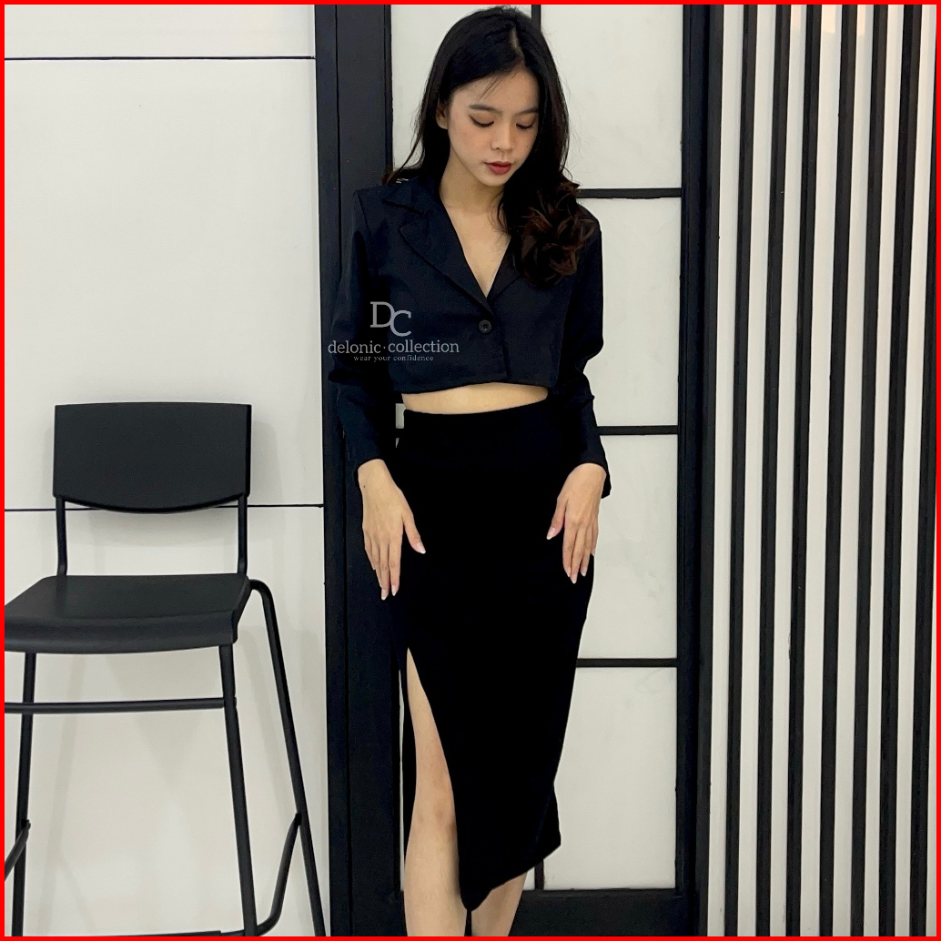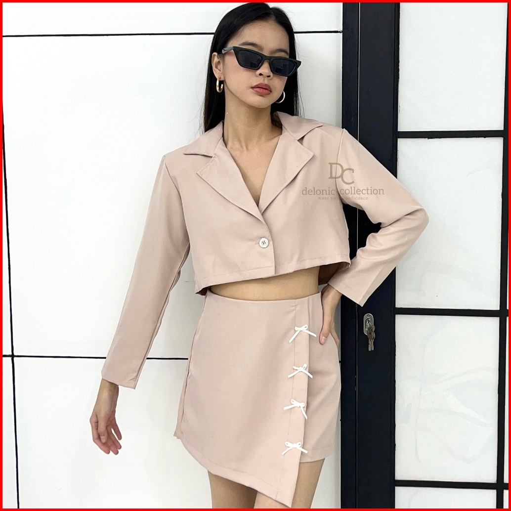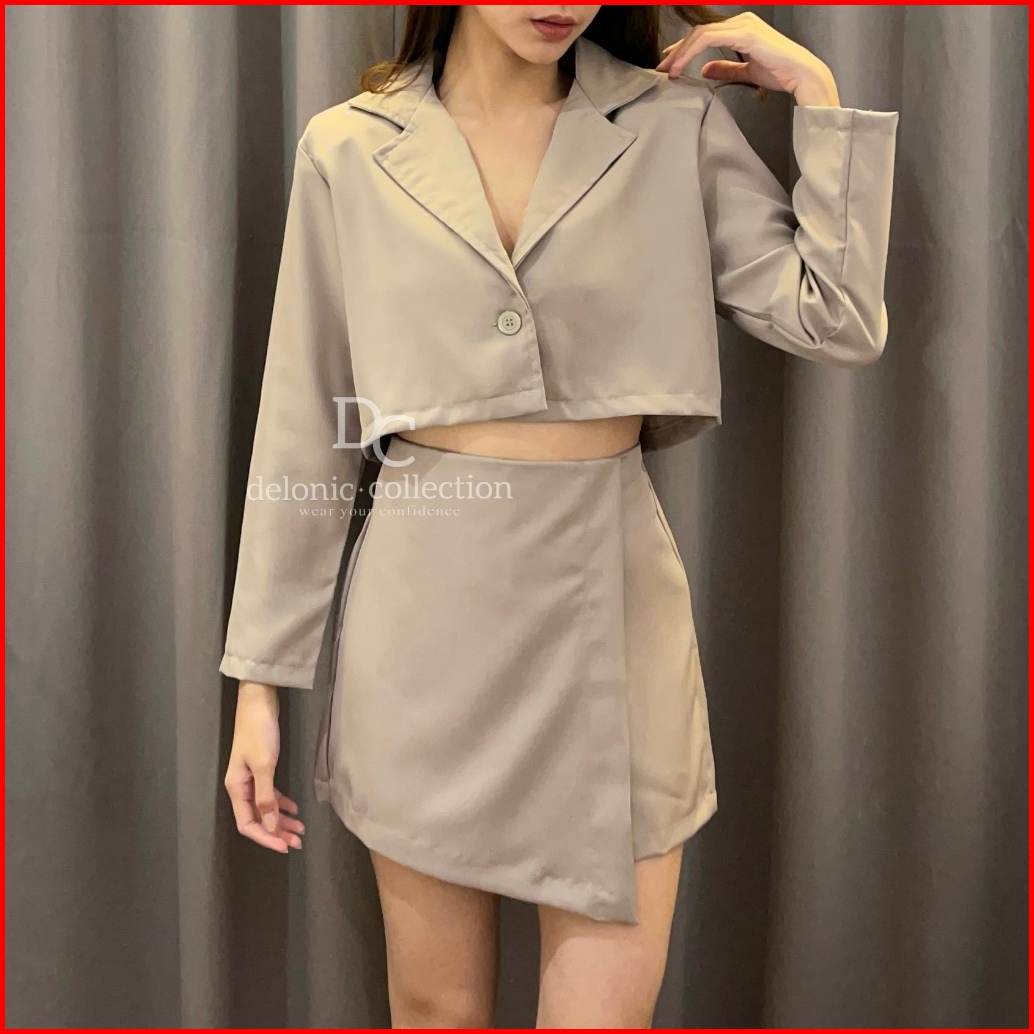 Eyli Blazer Outter Crop Top Twill Baleno - Atasan Baju Wanita Croptop Vneck Fashion Wanita Outfit Korea Hangout Kekinian