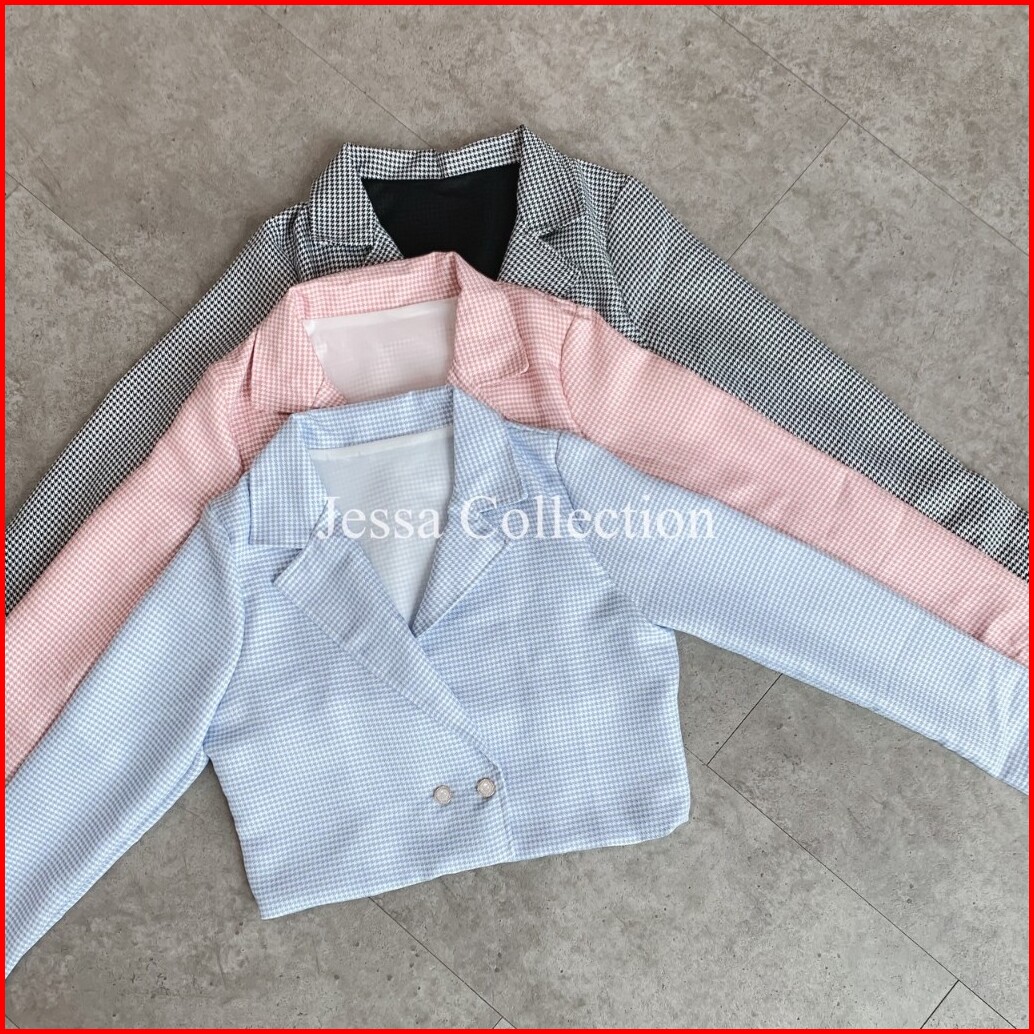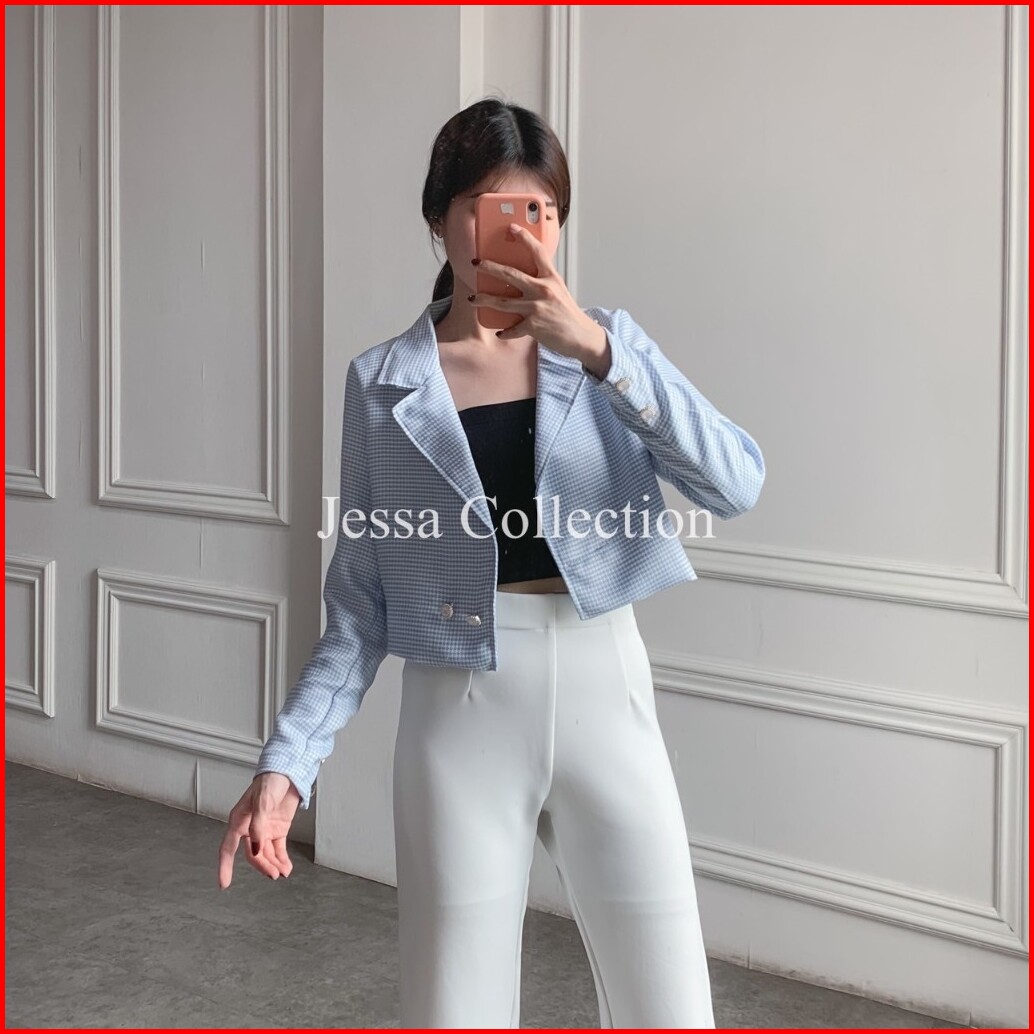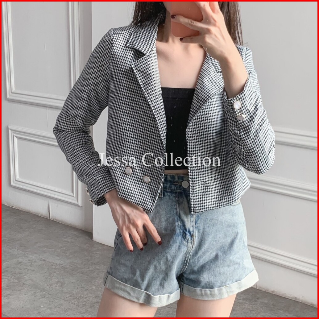 Tweed Blazer Crop Fg Baju Luaran Wanita Tangan Panjang Simple