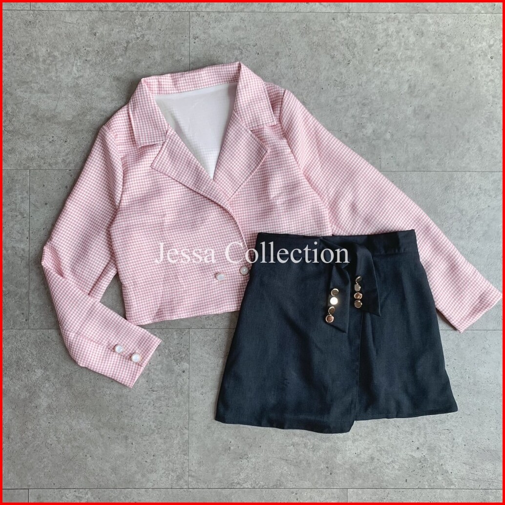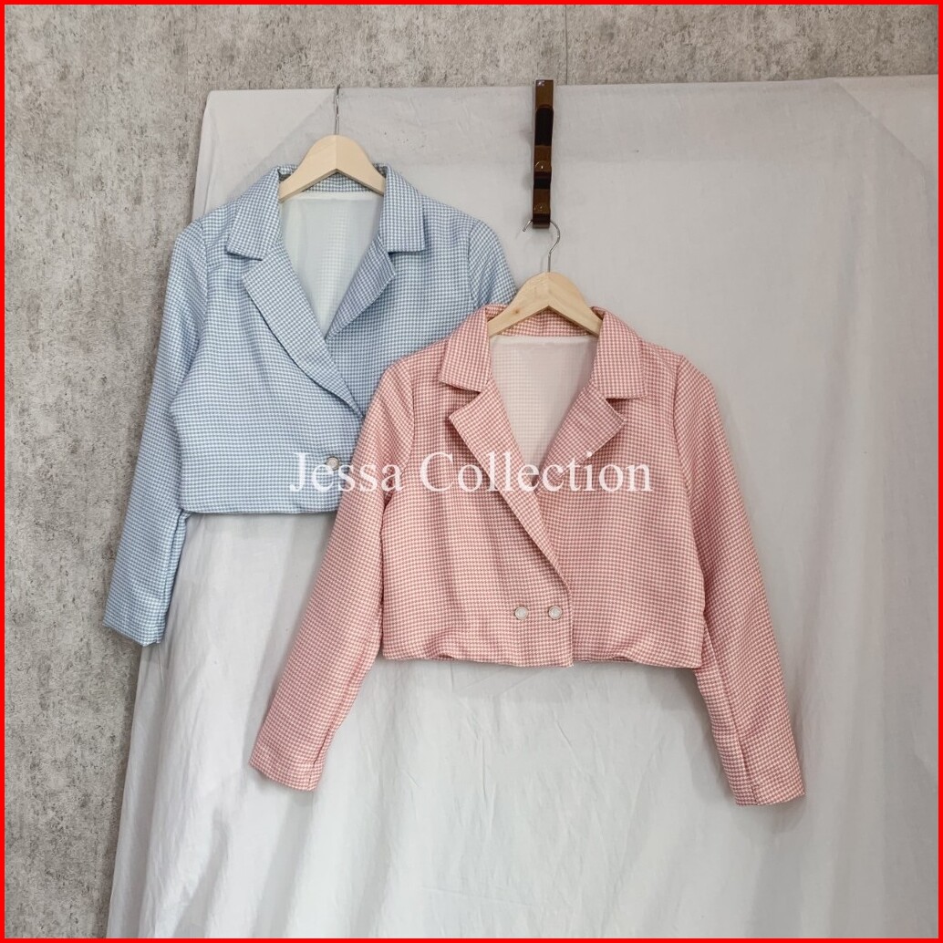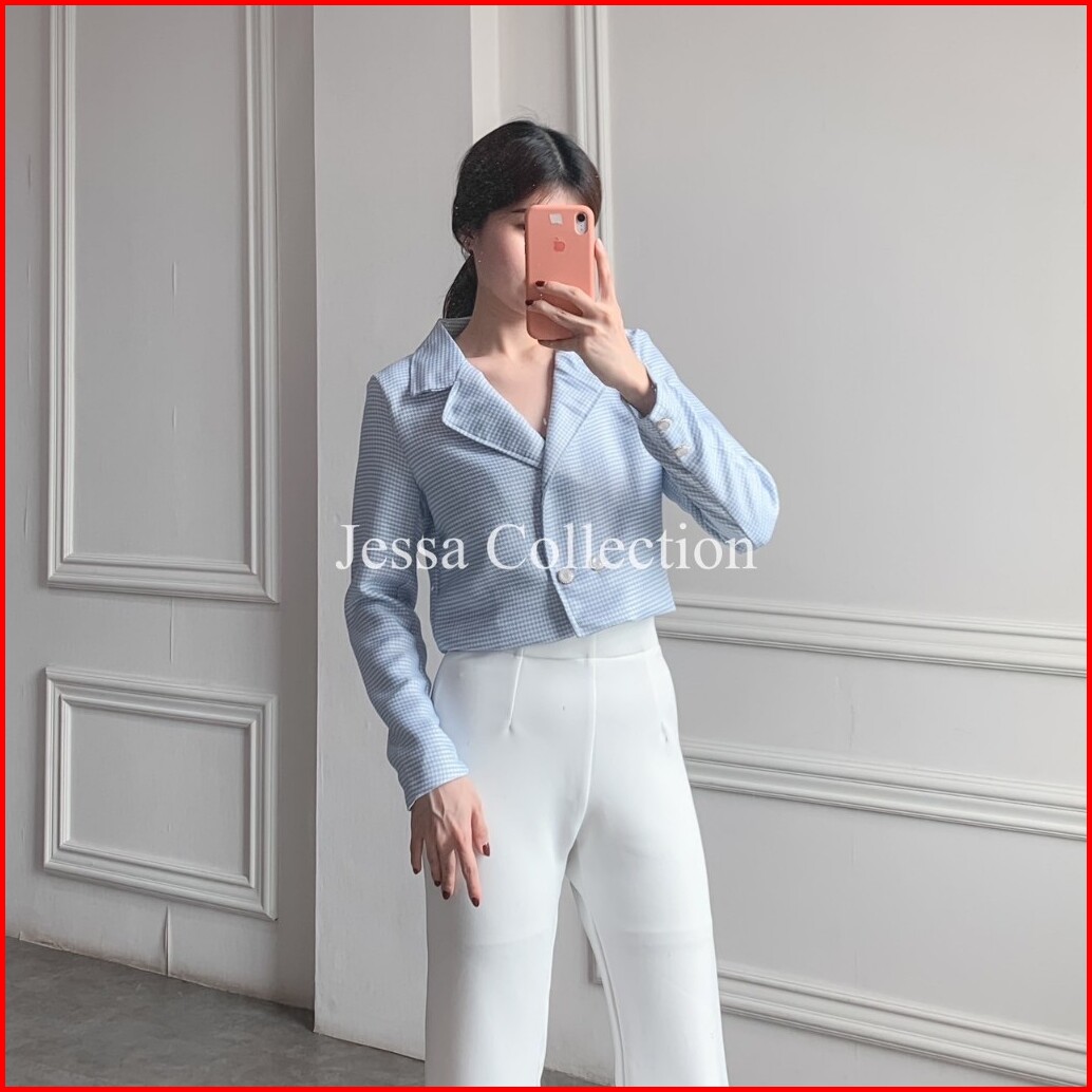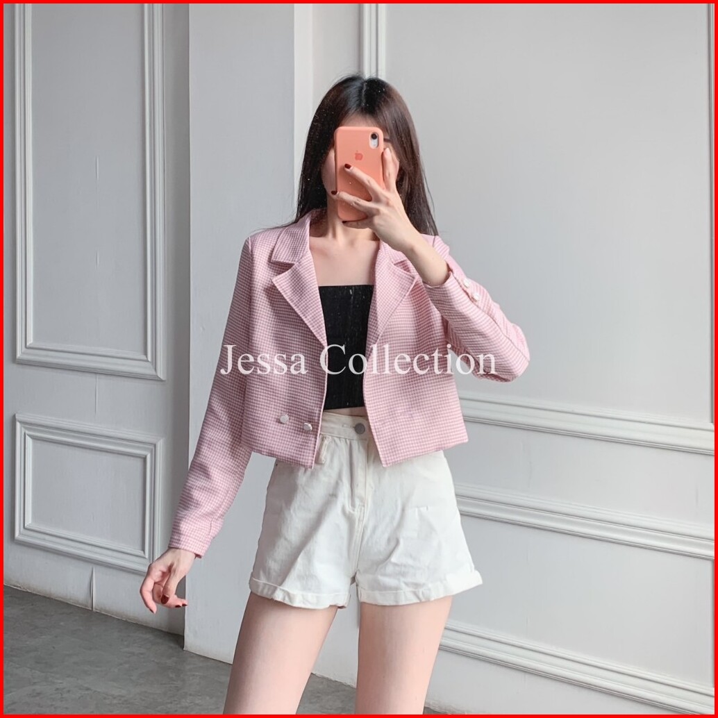 Tweed Blazer Crop Fg Baju Luaran Wanita Tangan Panjang Simple