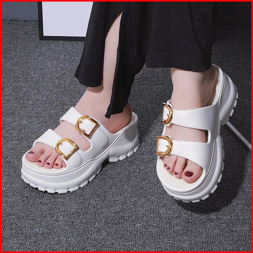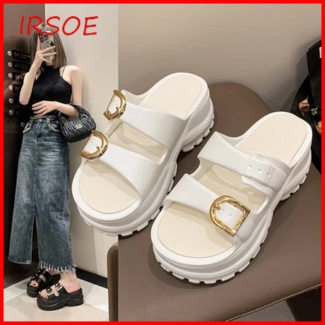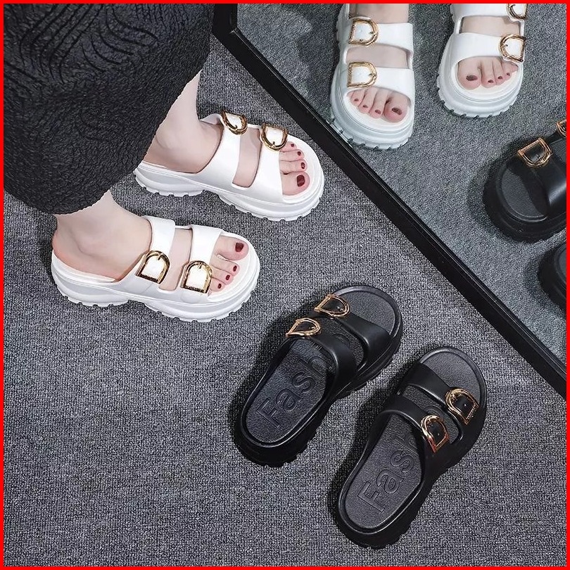 Irsoe Sandal Wanita Wedges Tinggi Ringan Empuk Kokoh Lentur Gasper Sandal Kekinian Anti Slip Ringan Double Strap Platfor