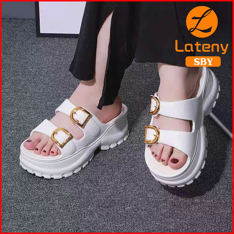 Lateny Sandal Selop Jelly Wanita Kekinian Korea Premium Eva Sendal Tebal Slip On Cewek Ootd Elegan