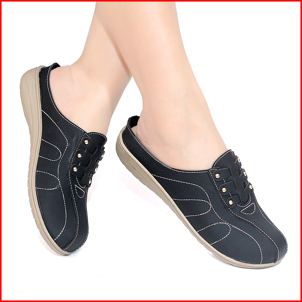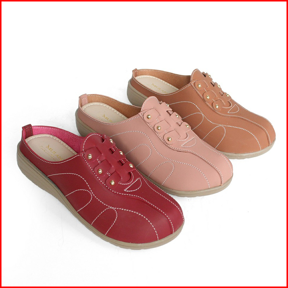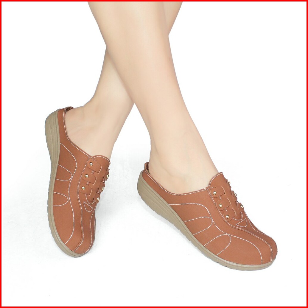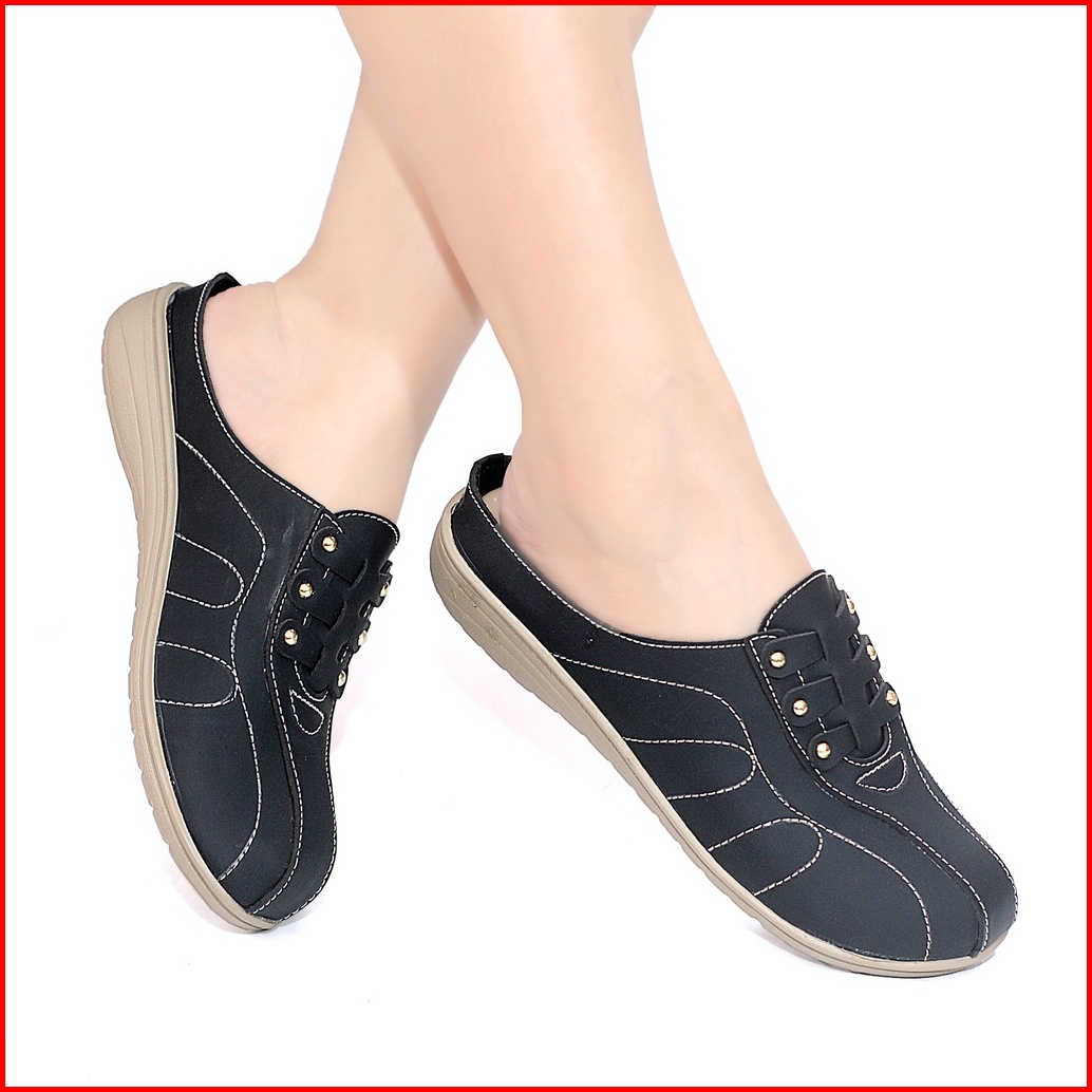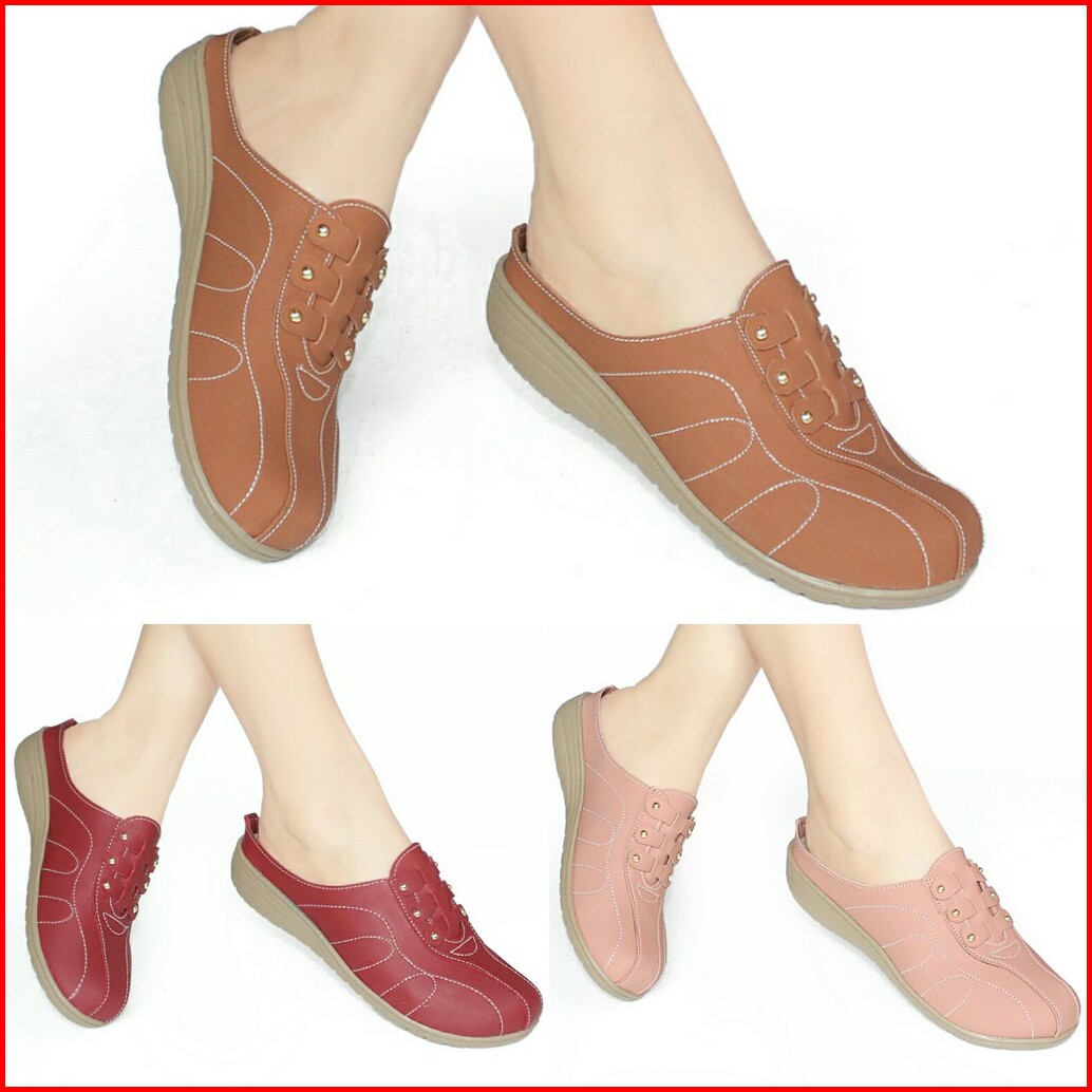 Sepatu Sandal Mules Wanita Kekinian Karet Kulit Terbaru Murah Sendal Selop Perempuan Dewasa Casual Sadal Slop Cewek Kasu