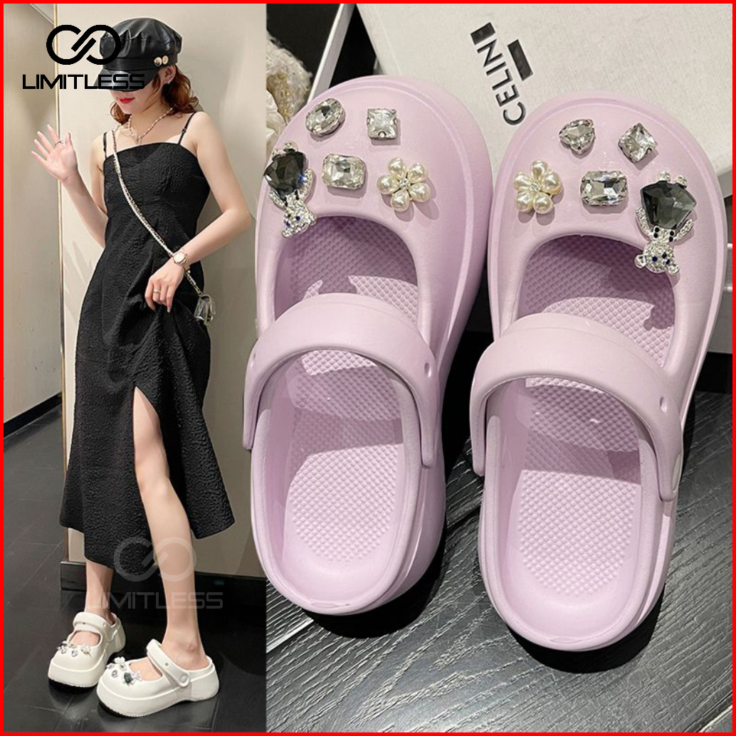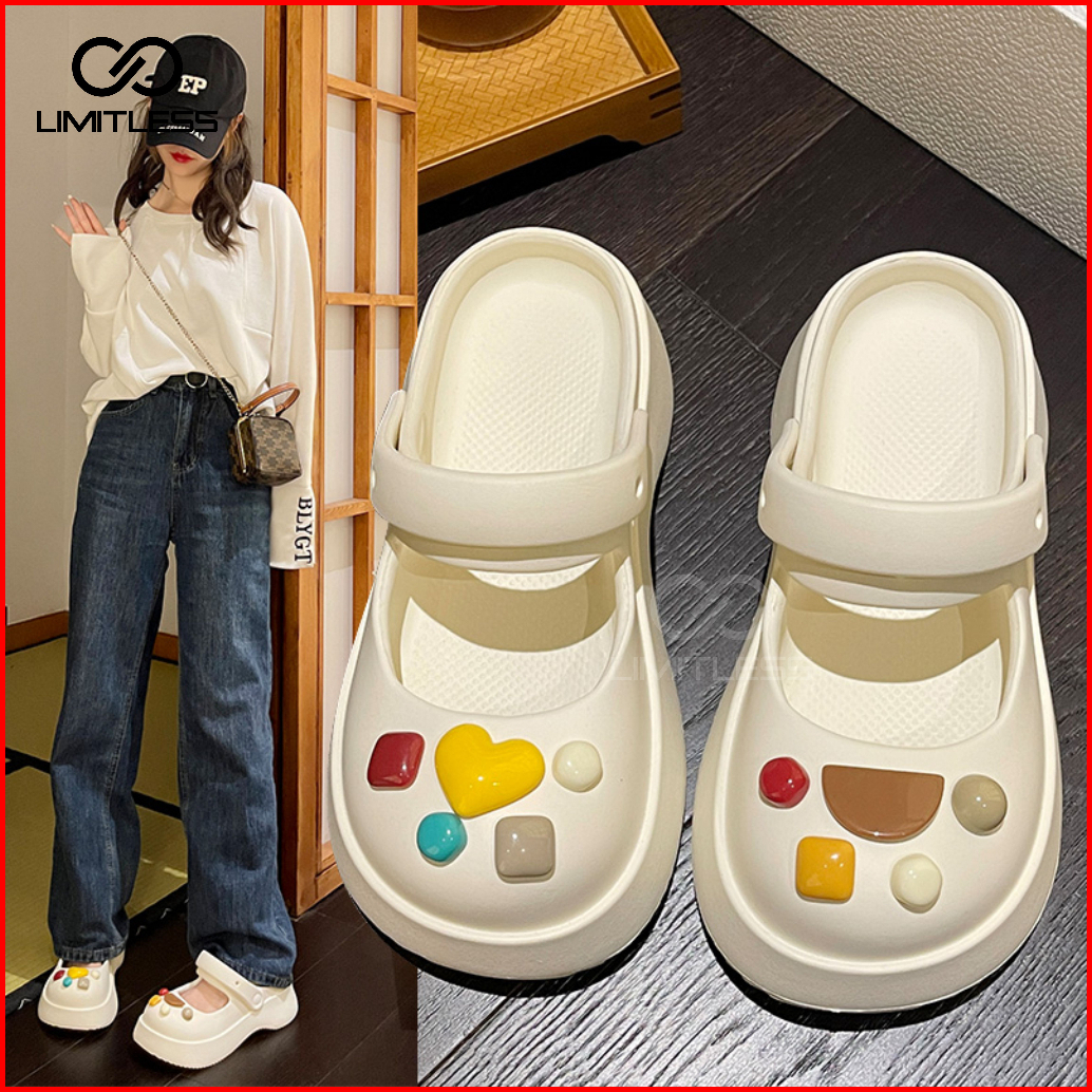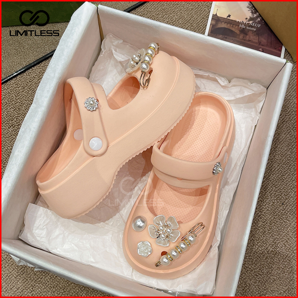Limitless - Sandal Selop Wanita Dewasa Inara Permata Elegant Fashion Korea Sendal Slop Cewek Tali Wedges Kekinian Terbar