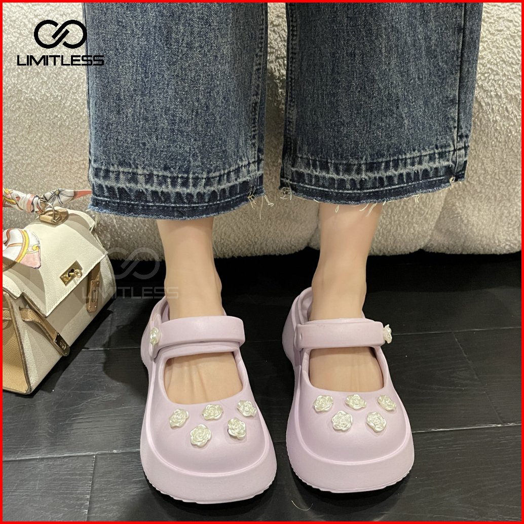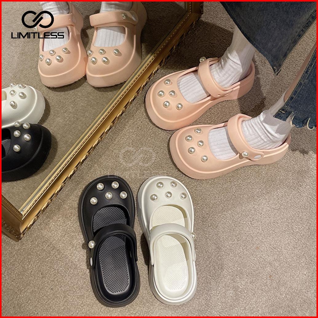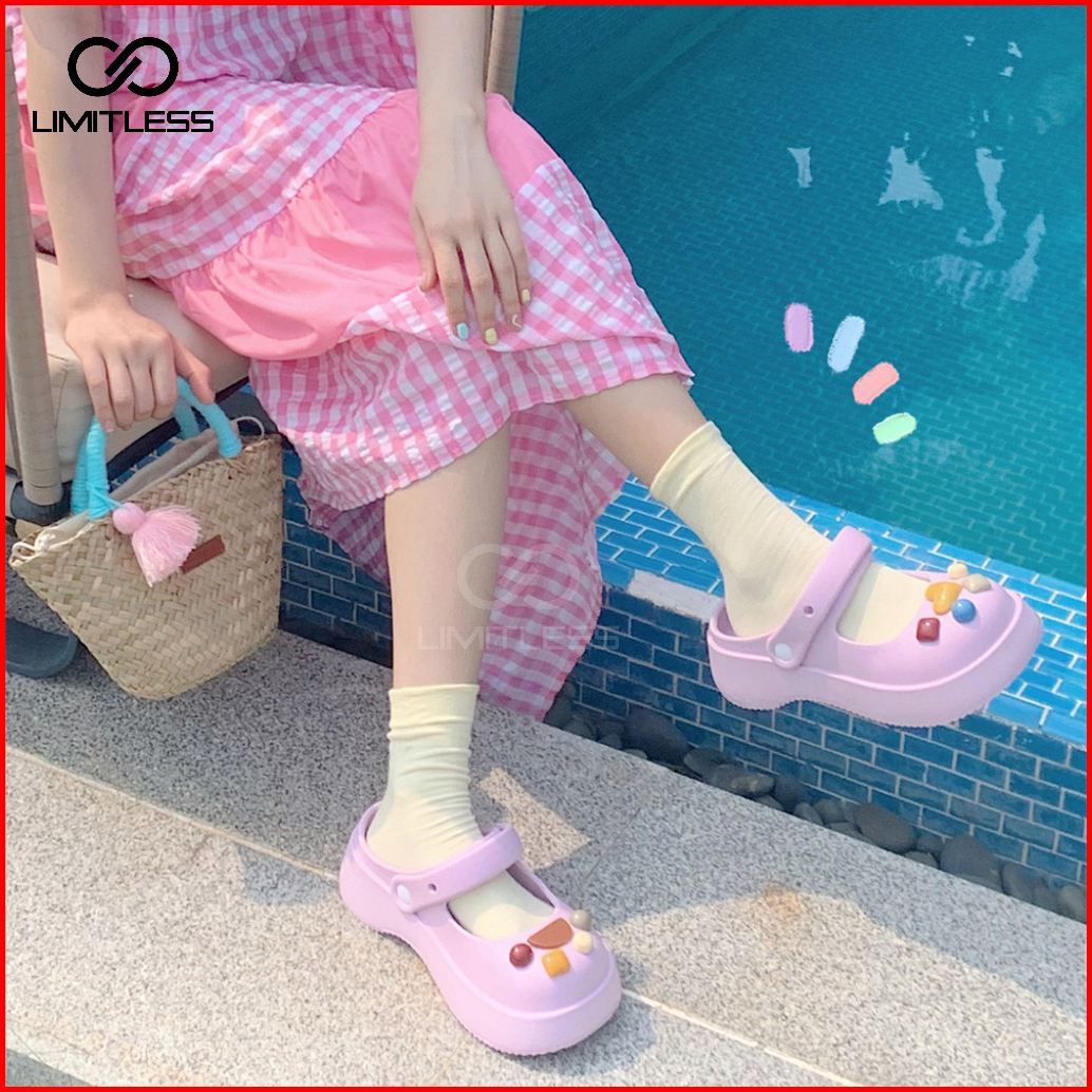 Limitless - Sandal Selop Wanita Dewasa Inara Permata Elegant Fashion Korea Sendal Slop Cewek Tali Wedges Kekinian Terbar