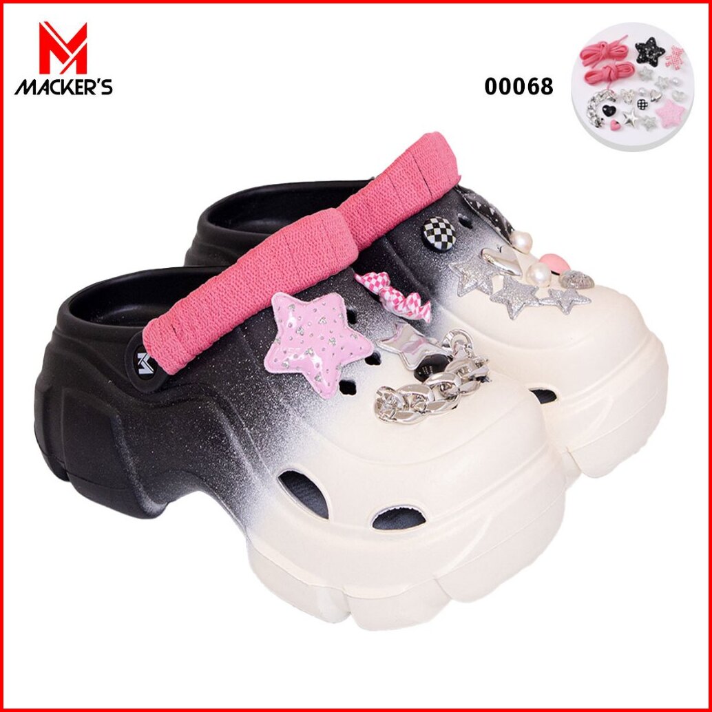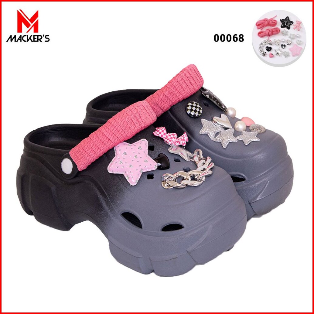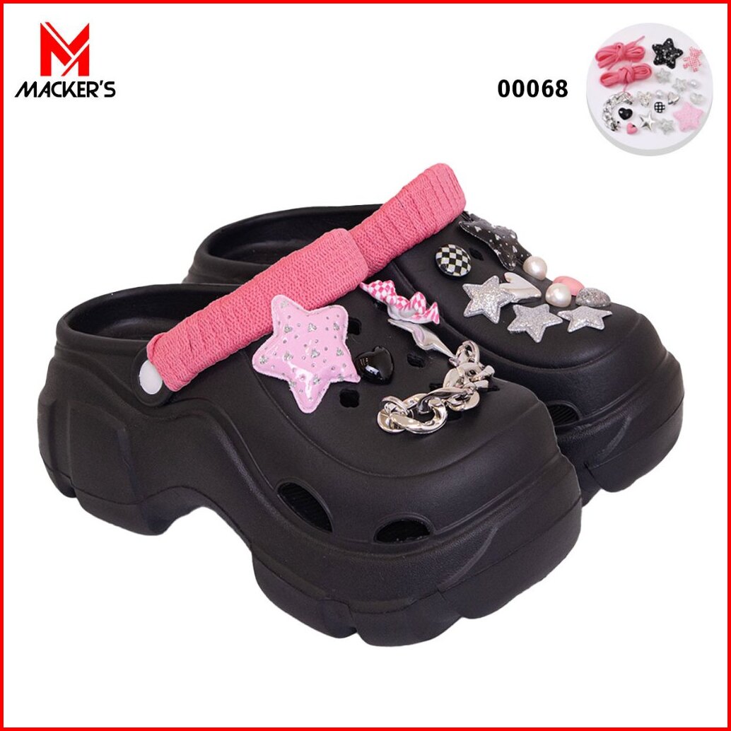 Macker S T01 068 Sandal Baim Sandal Kodok Wanita Terbaru Dengan Jibbitz Bintang Dan Rantai Sandal Wedges Lucu Sepatu Kar