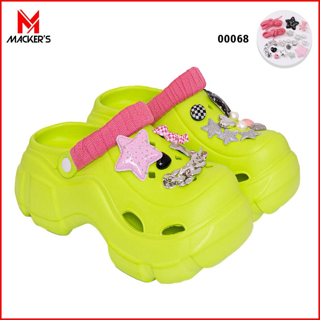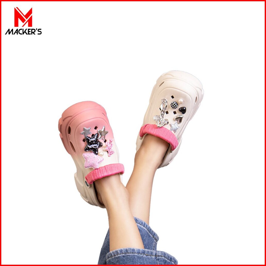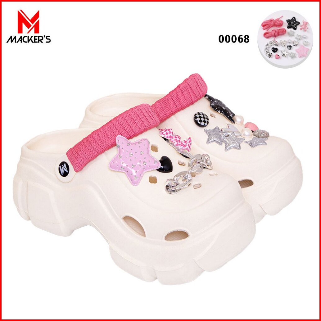 Macker S T01 068 Sandal Baim Sandal Kodok Wanita Terbaru Dengan Jibbitz Bintang Dan Rantai Sandal Wedges Lucu Sepatu Kar