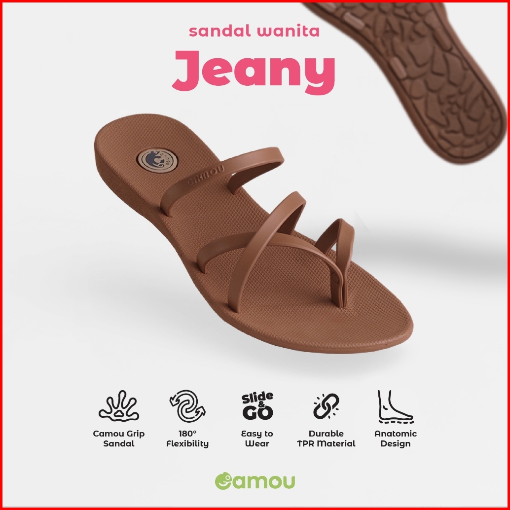 Art. Jeany Sandal Tali Wanita Anti Slip Full Karet Camou Nyaman