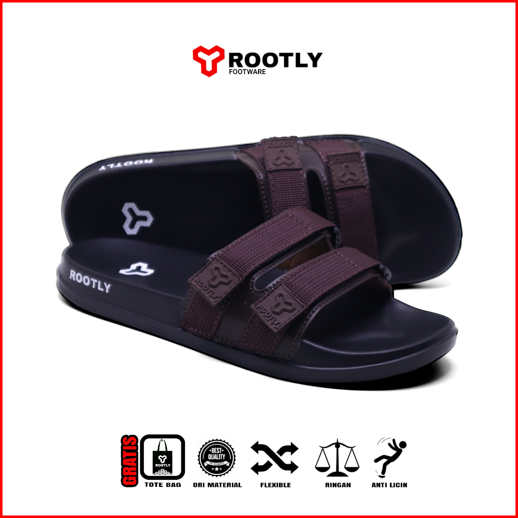 Rootly - Sandal Selop Pria Corda Velcro Slide Coklat Unisex