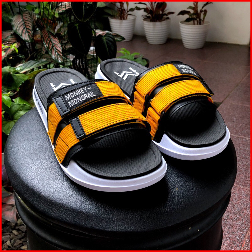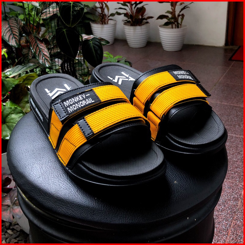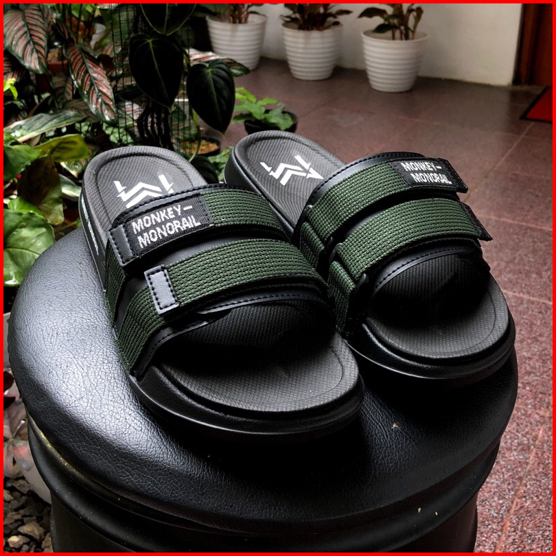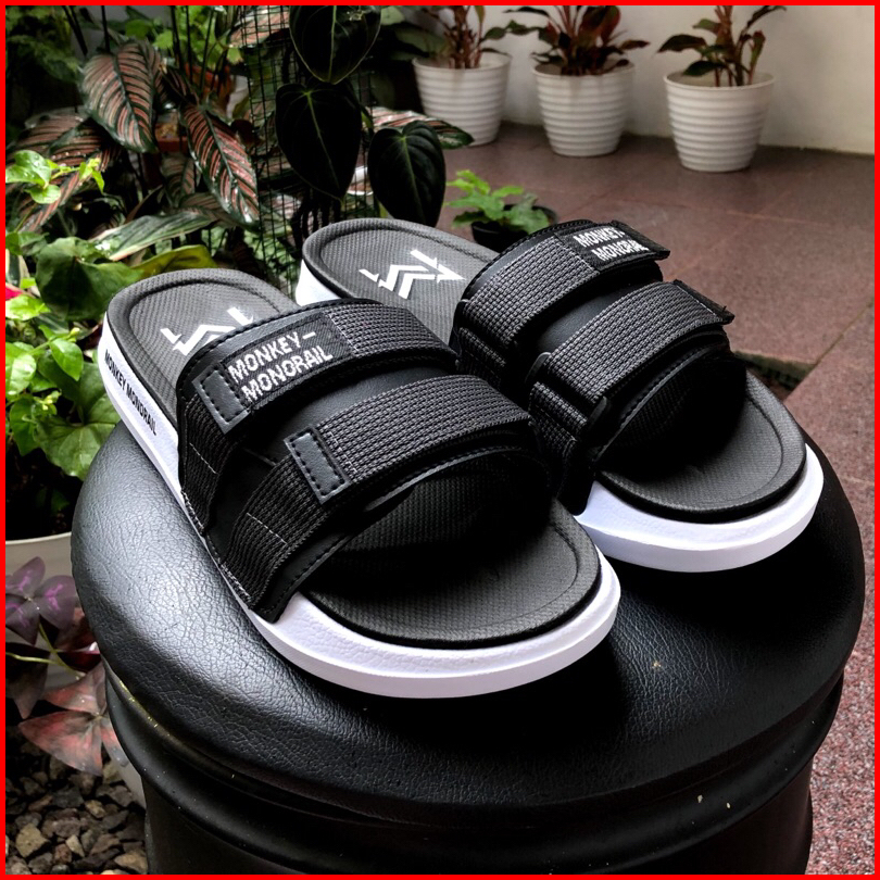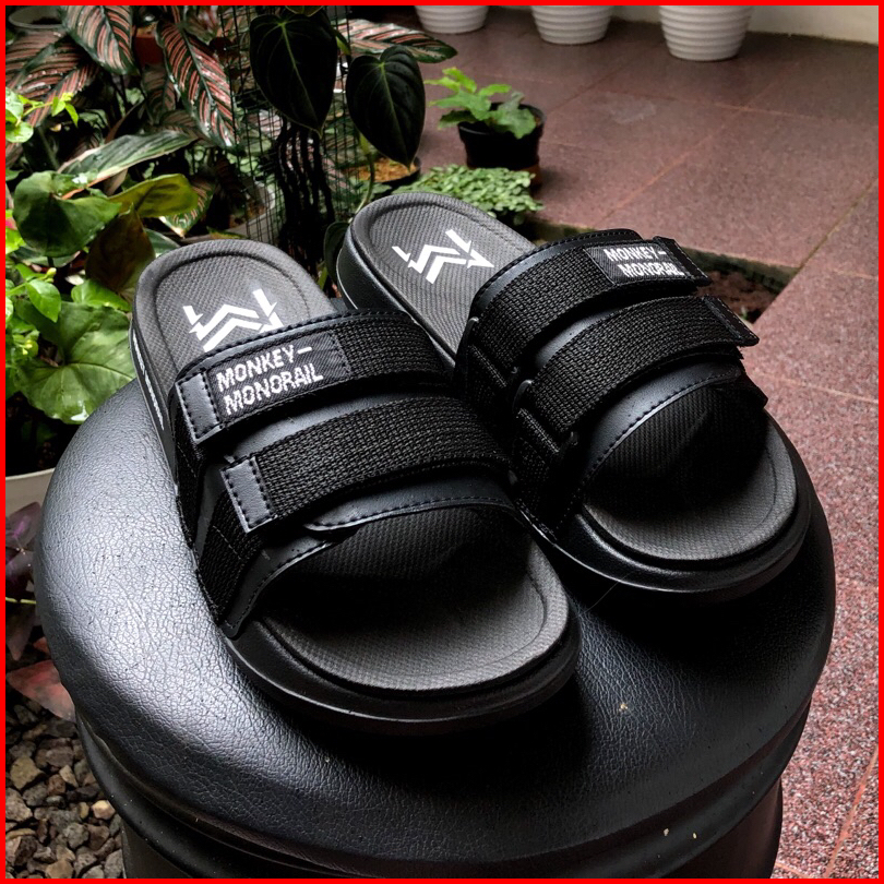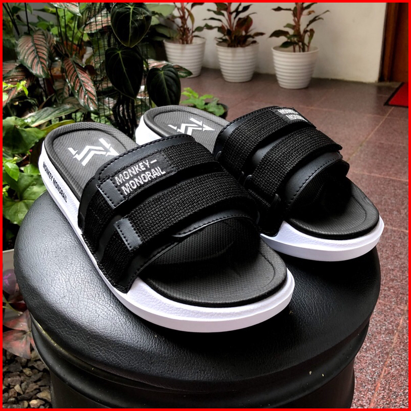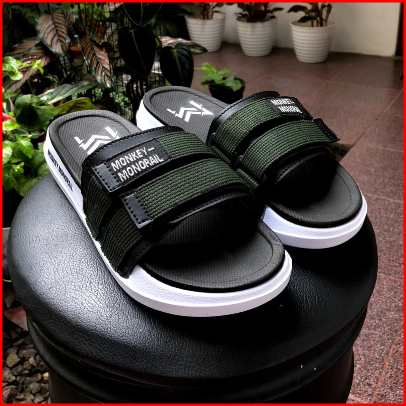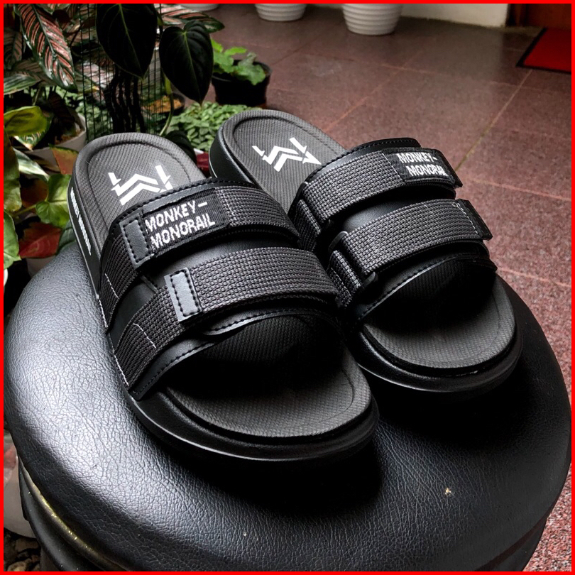 Monkey Monorail Sanata Putih-abu Sandal Double Spon Premium Sandal Pria Kekinian