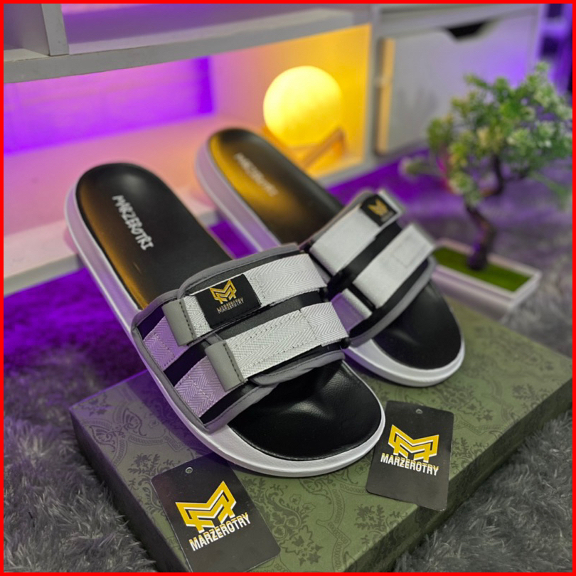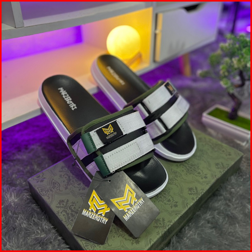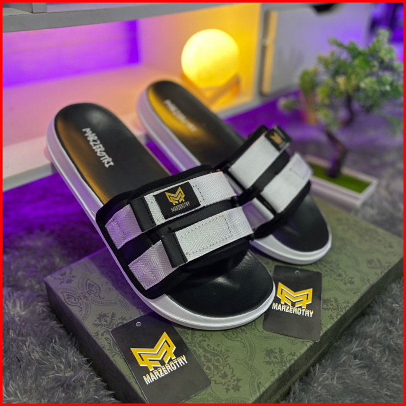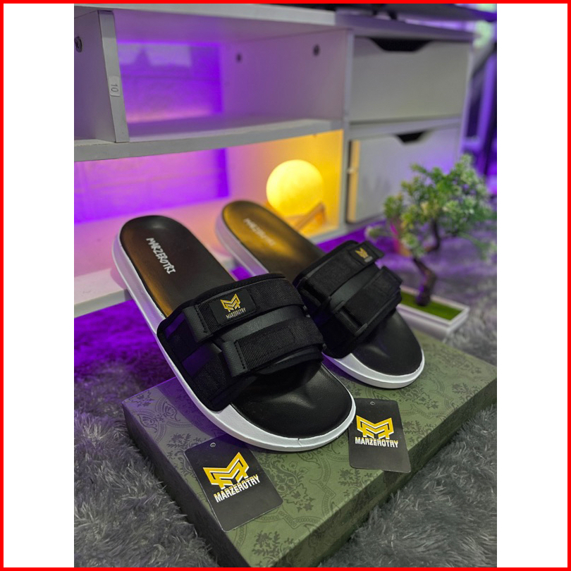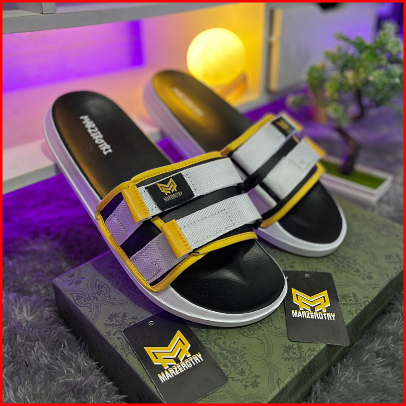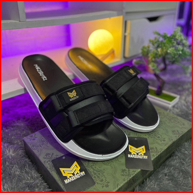 Marzerotry-012 Sandal Pria Keren Casual Black Yellow Unisex Sandal Slide Anti Licin Free Paperbag