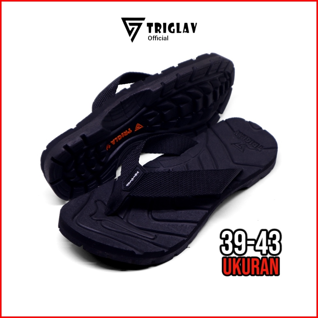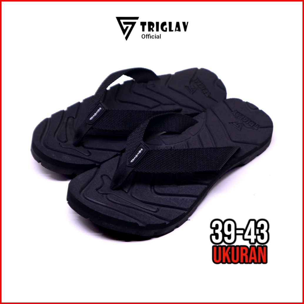 Triglav - Sandal Jepit Pria Wanita Gunung Full Black