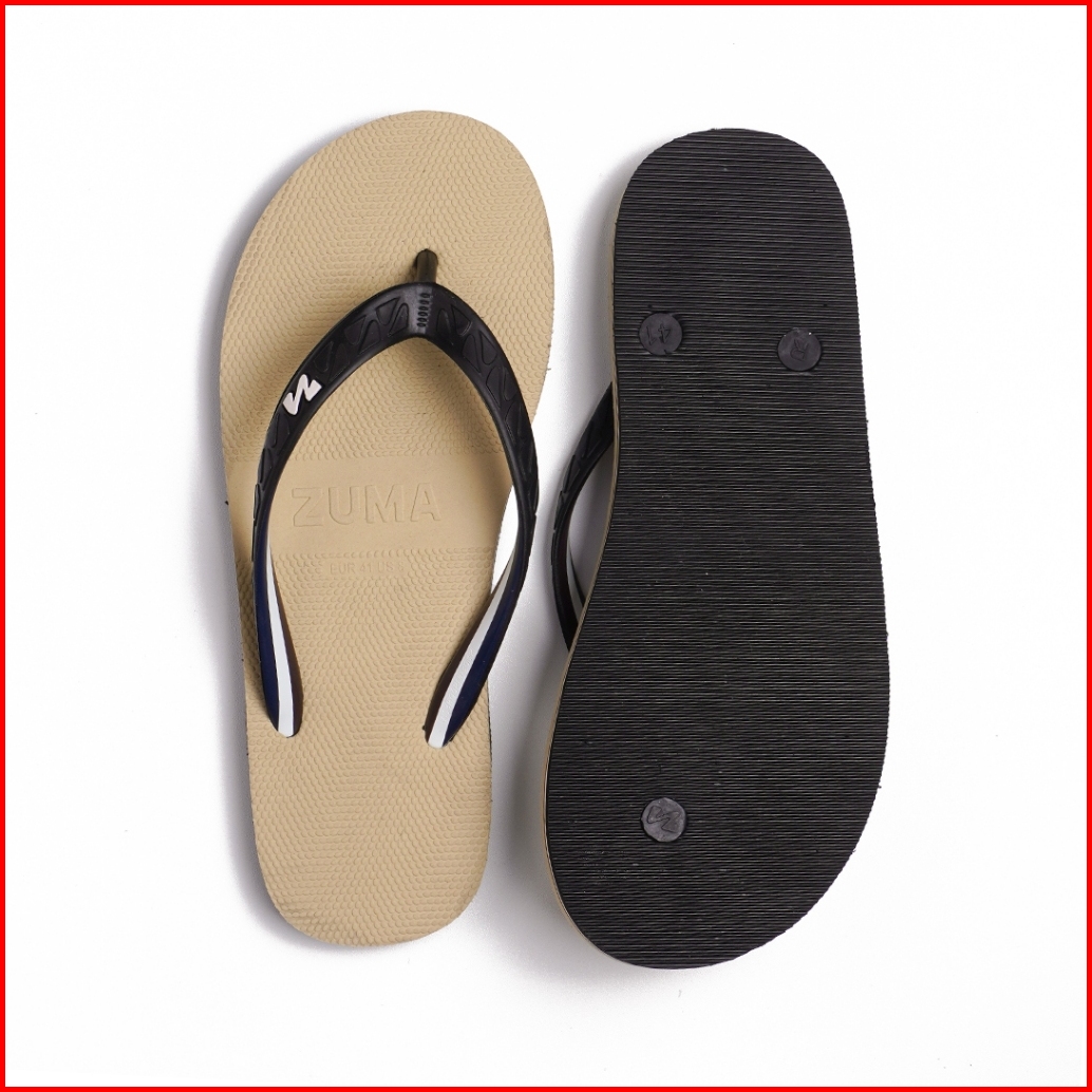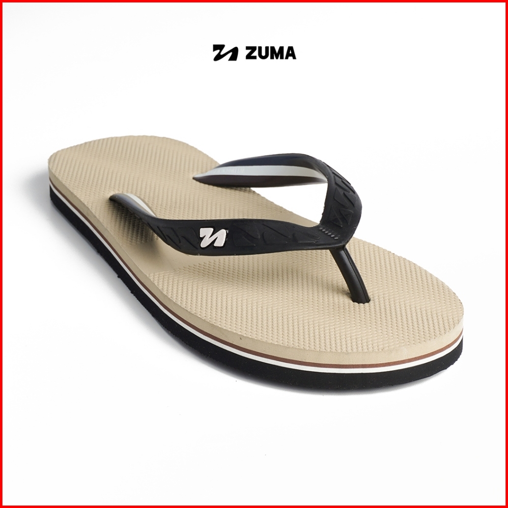 Zuma Men Stripe 10 Almond Sandal Jepit Pria Karet Polos Hitam Coklat Almond