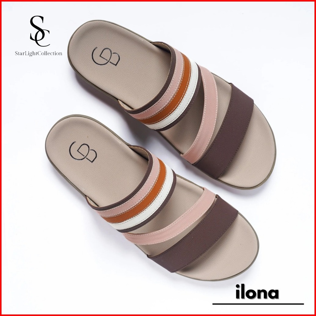 Christian Bale Ilona Sandal Wanita Kekinian Sendal Slop Cewek Sandal Flat Tali Casual