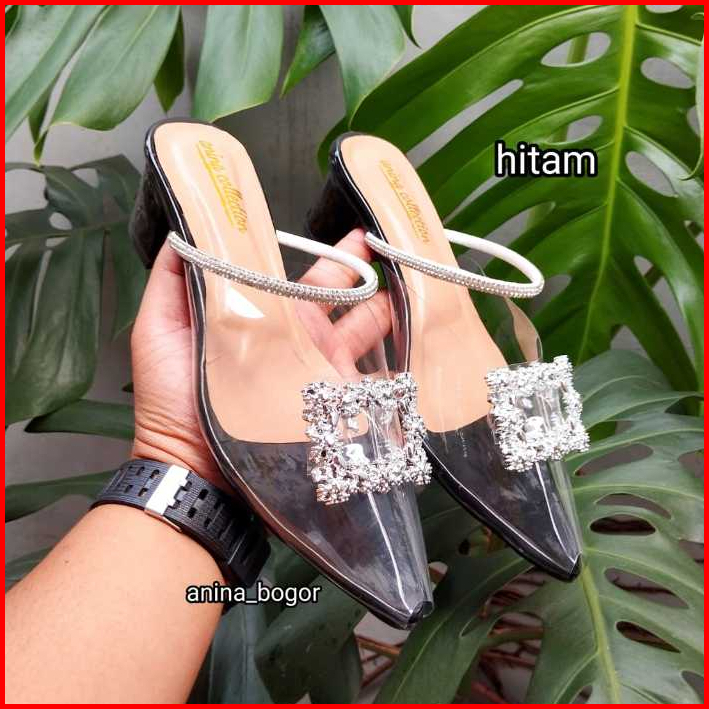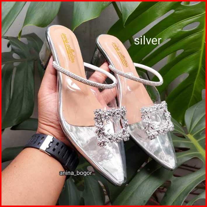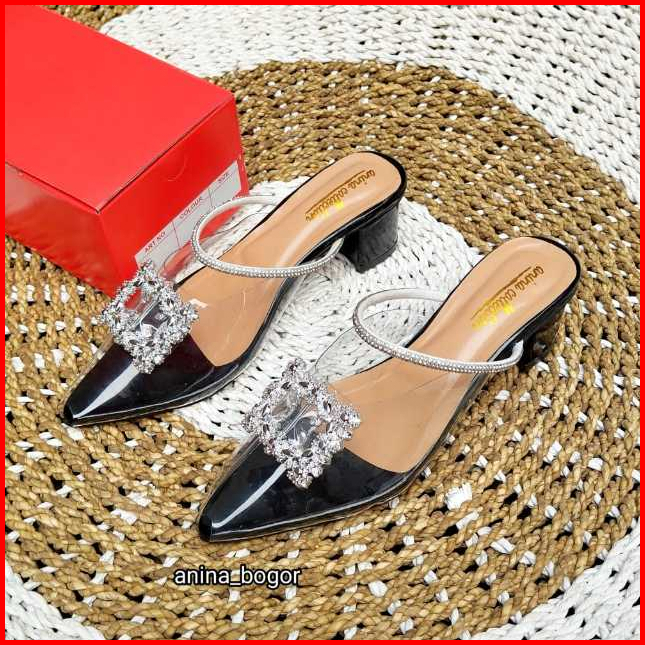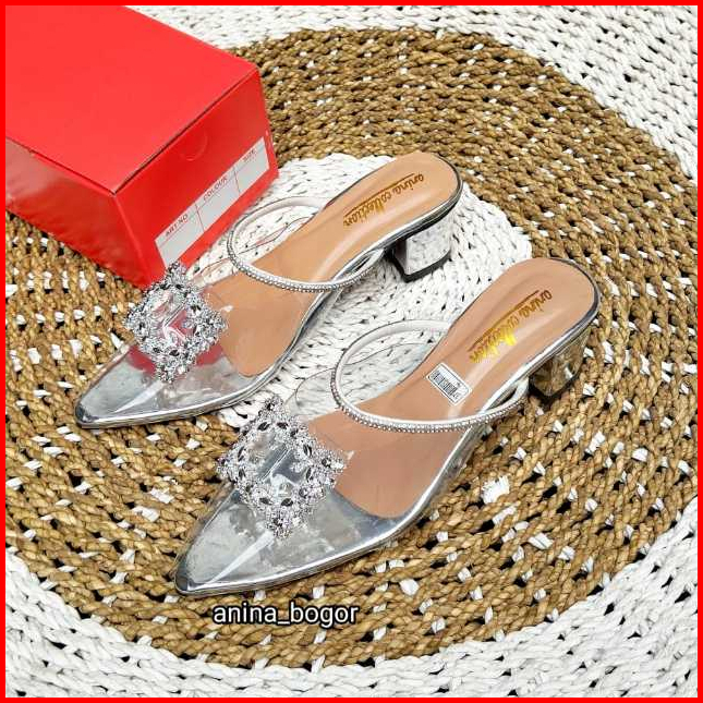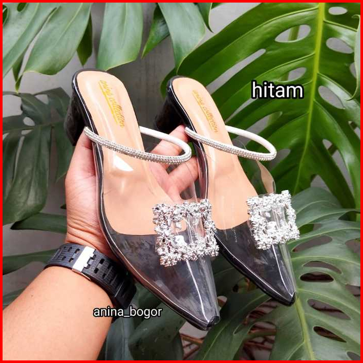 Sepatu Heels Pesta Wanita Terbaru Mika Kaca Transparan Tali Mutiara Dv-04