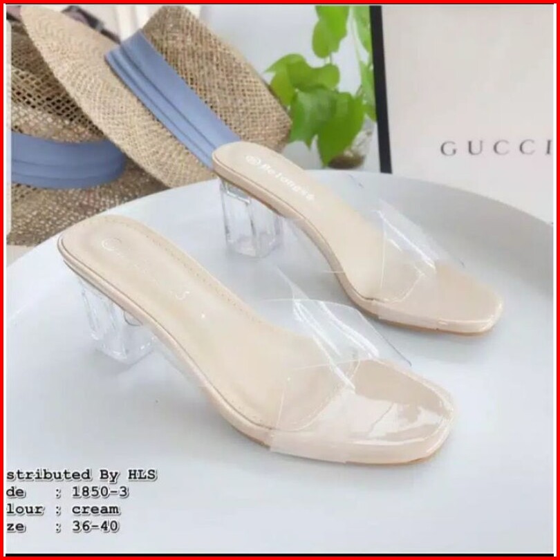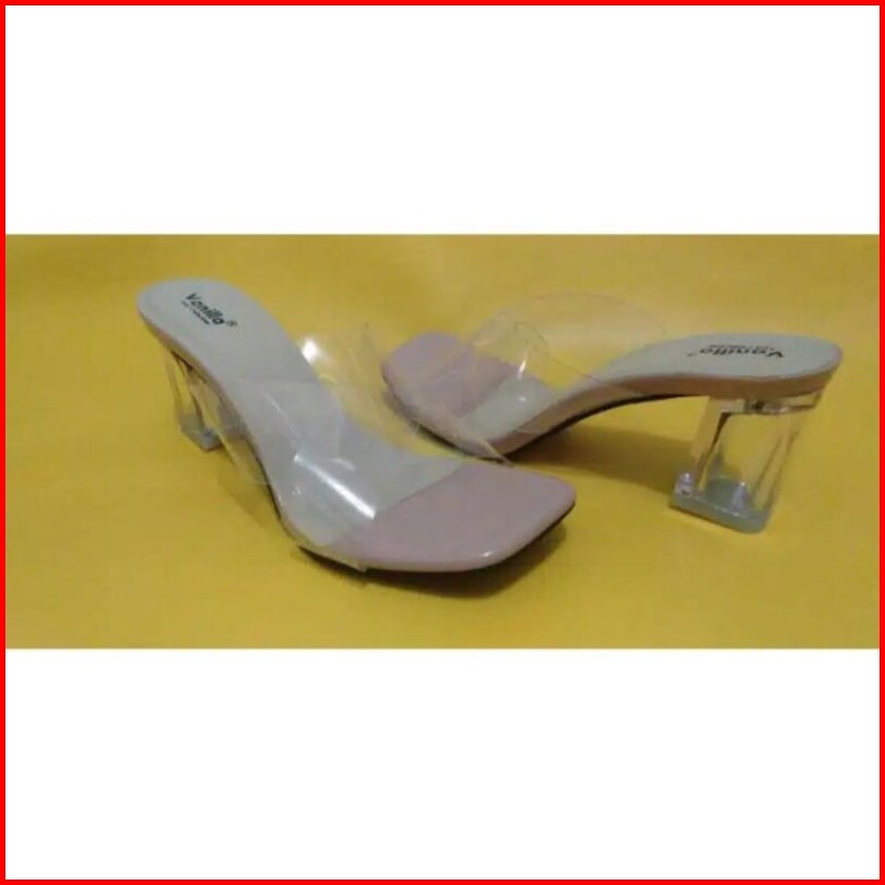 Sandal Heels Wanita Hak Kaca 7cm Motif Mika Silang Bening Sol Japarino