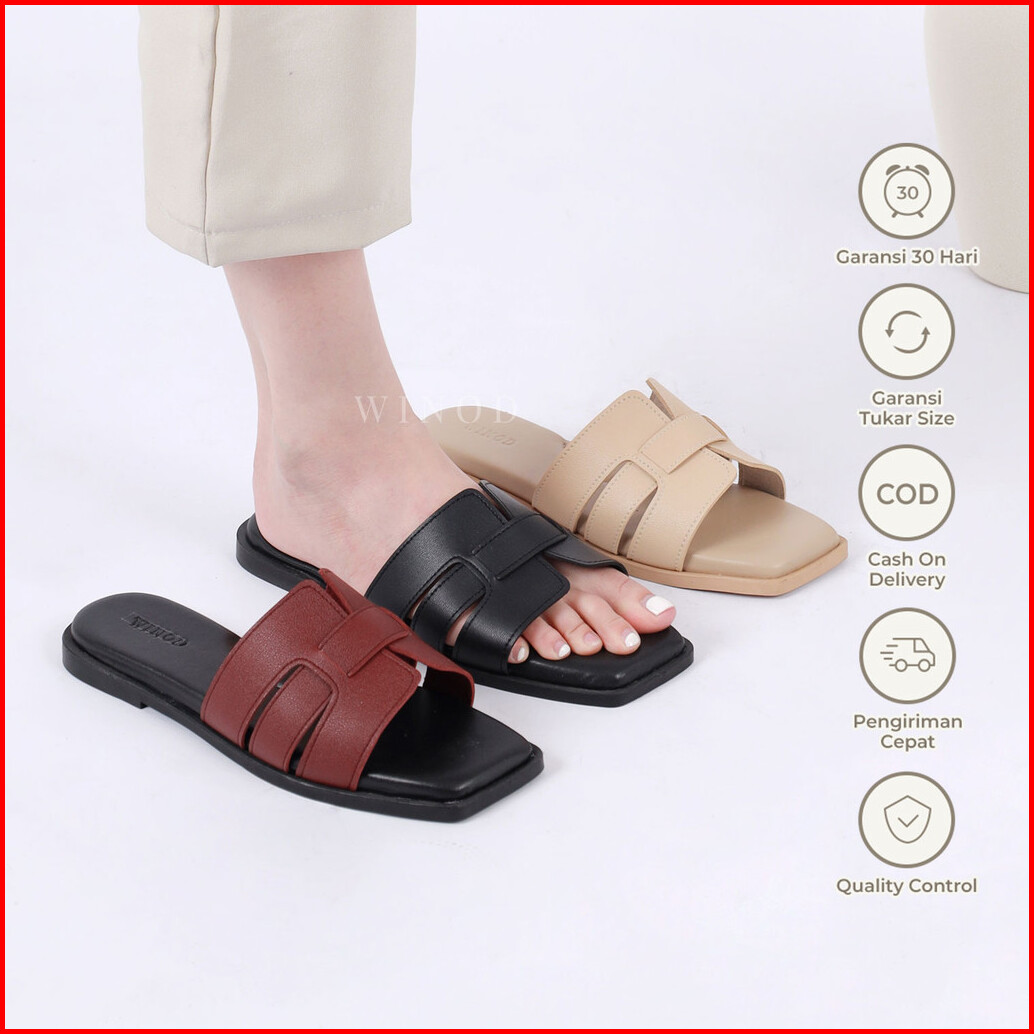 Winod Zoe Sandal Selop Wanita Model Flat Slip On Hangout Daily